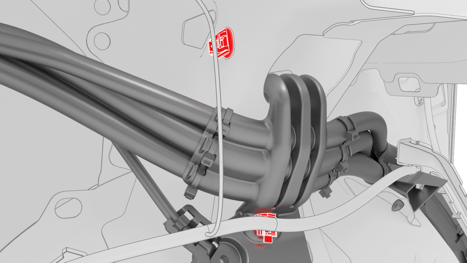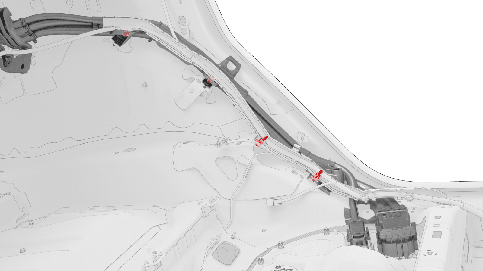 - Install the clips (x4) that attach the LV electrical harness along the C-pillar area.