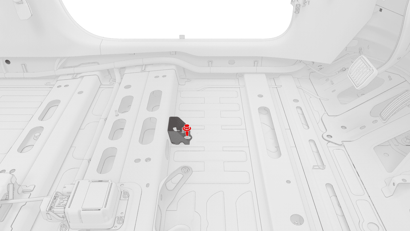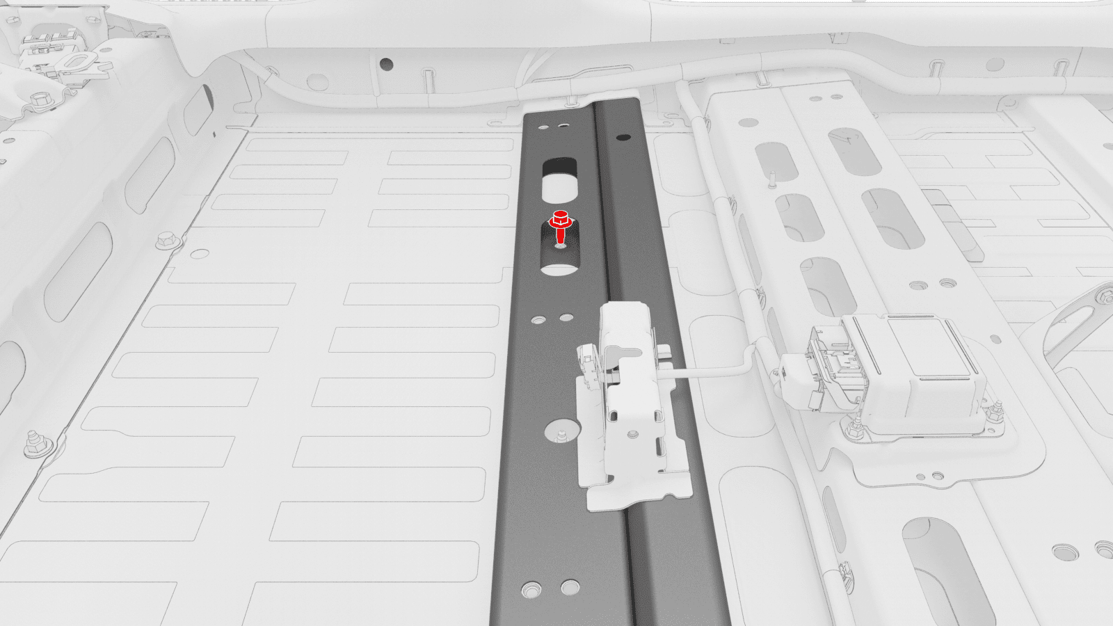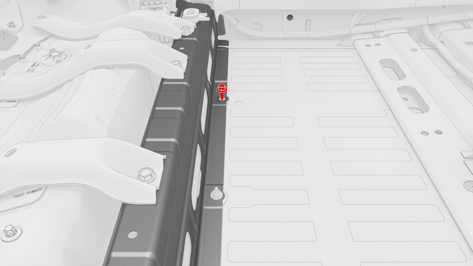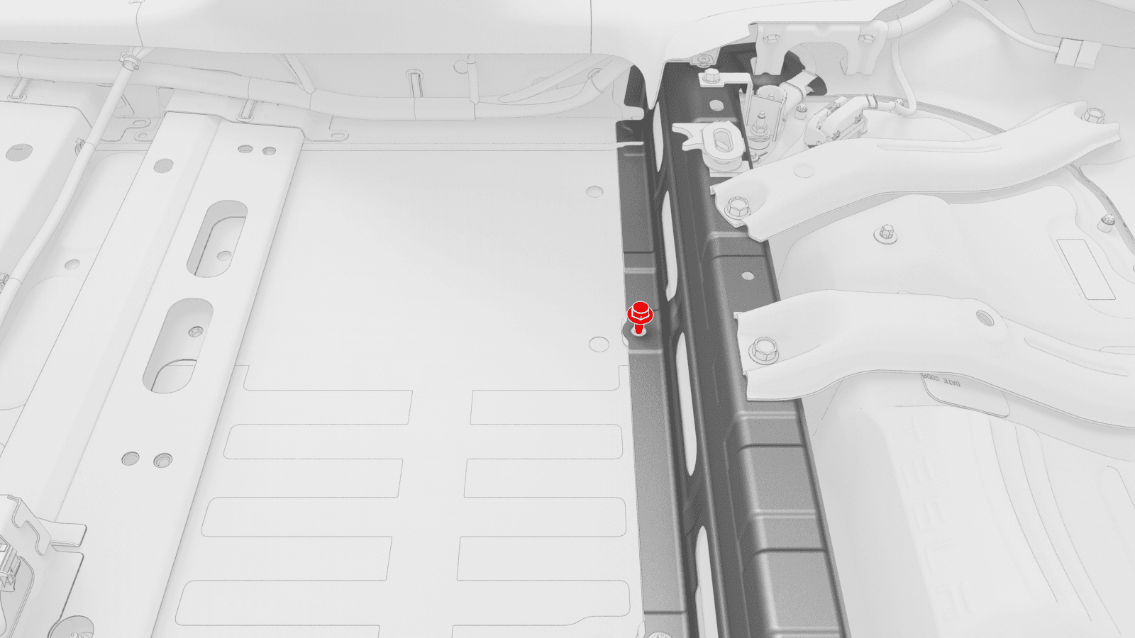 - Lift up the RH side of the rear carpet and insert a hand to feel if the 4th RH HV battery bolt is present. If the bolt is present, then remove the bolt.