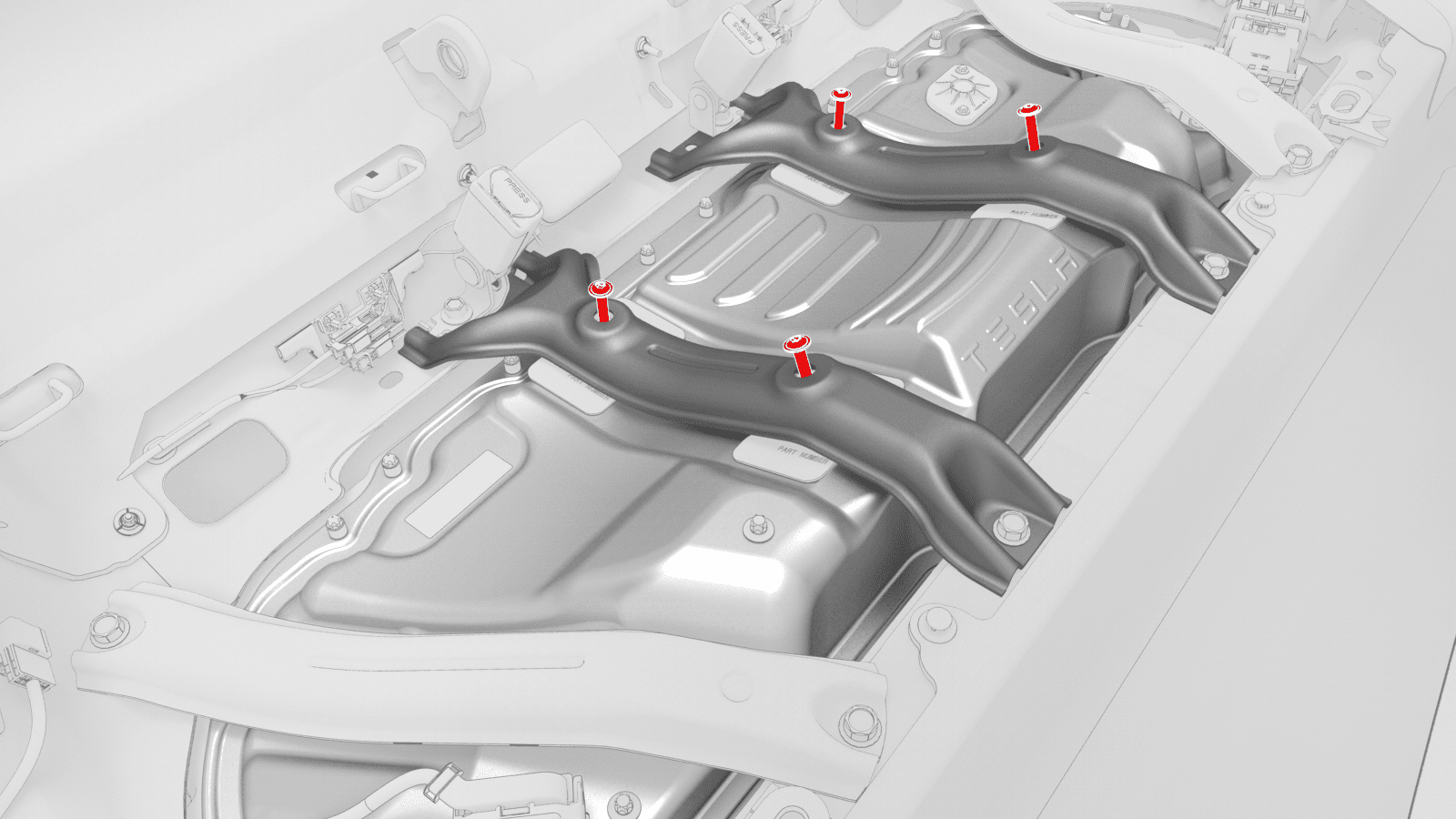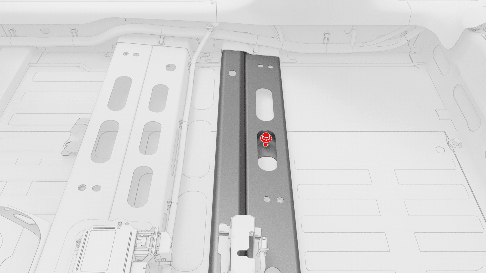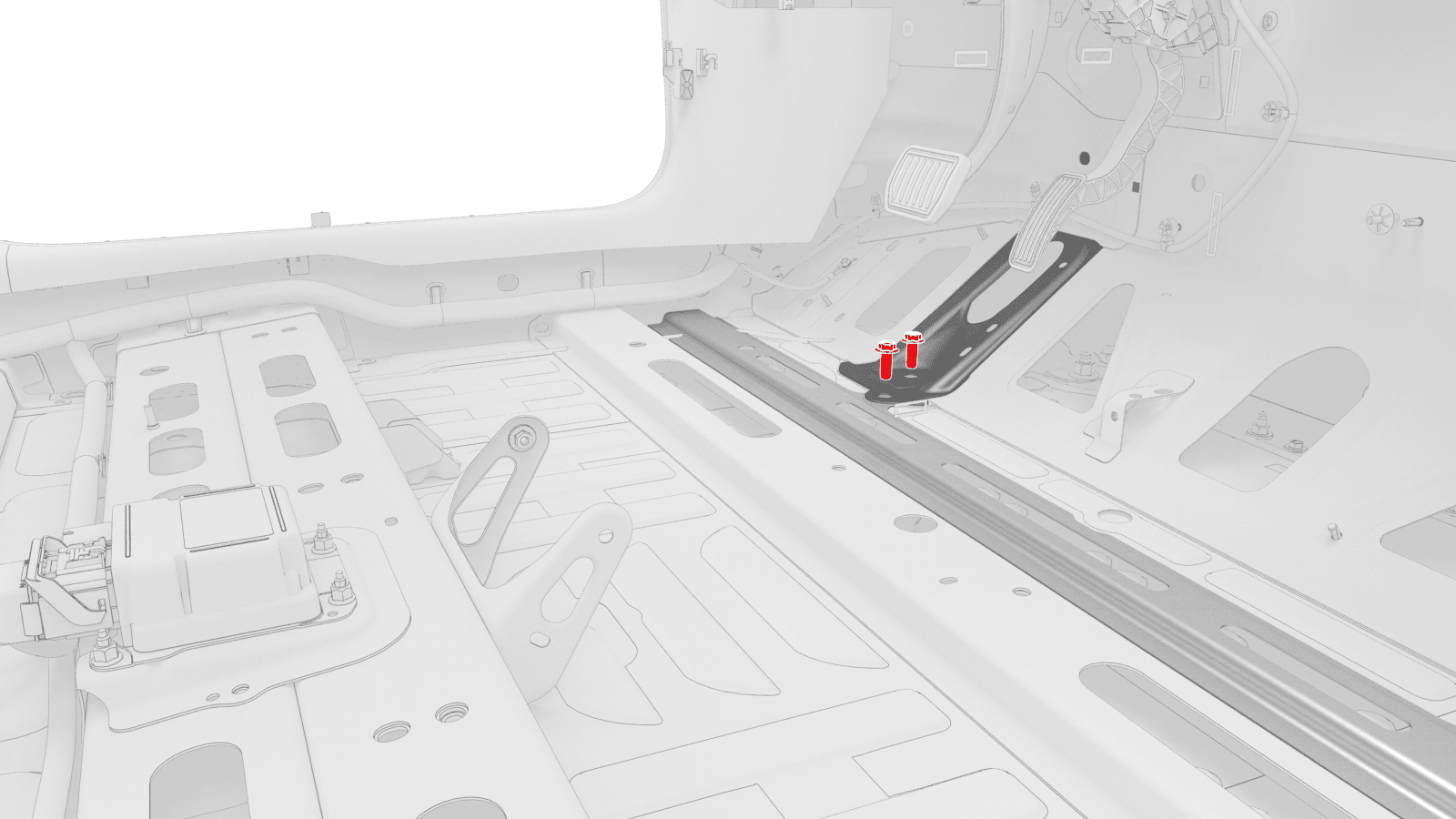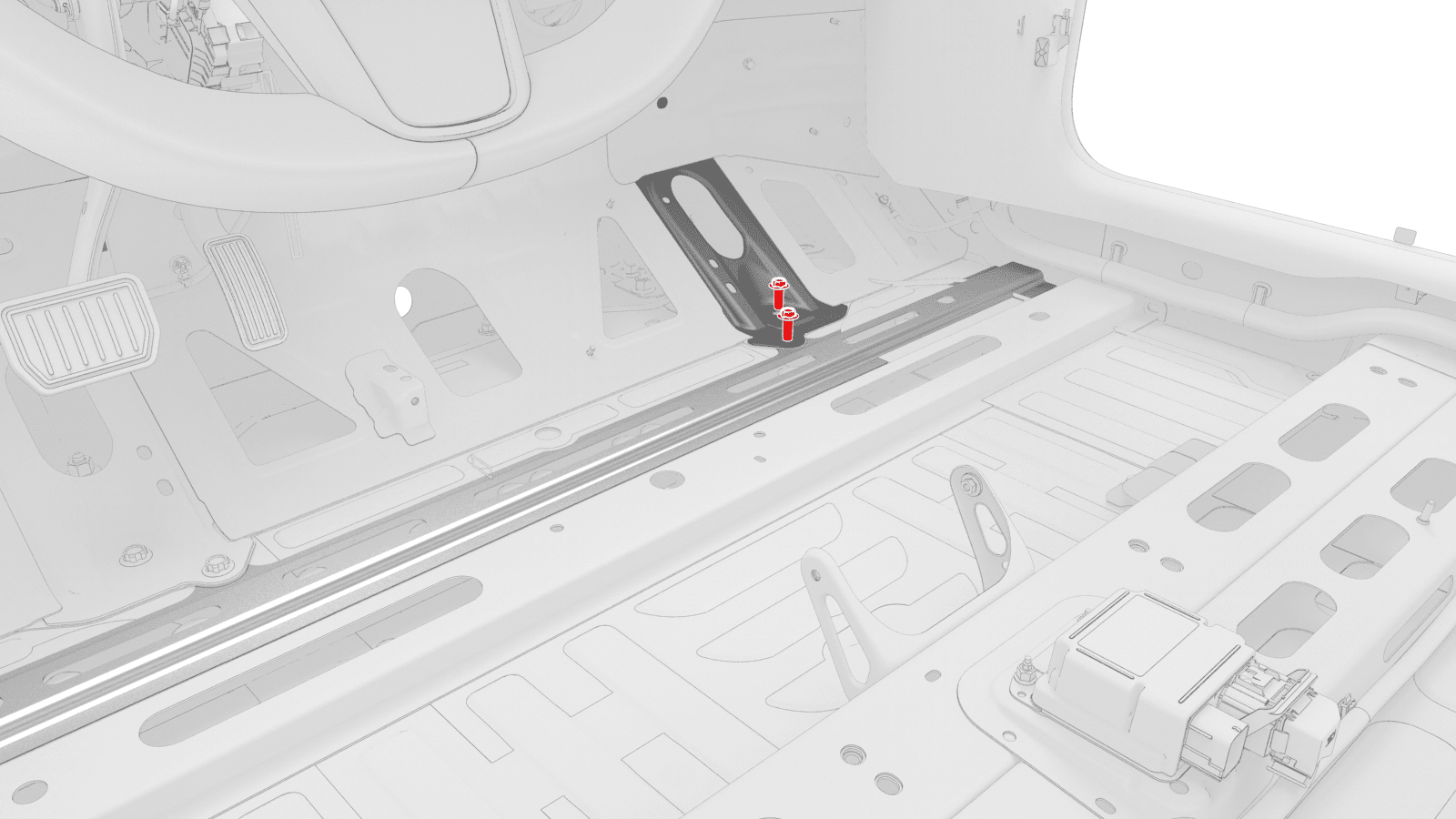 - Lift up the RH side of the rear carpet and insert a hand to feel if the 4th RH HV battery bolt is present. If the bolt is present, then remove the bolt.