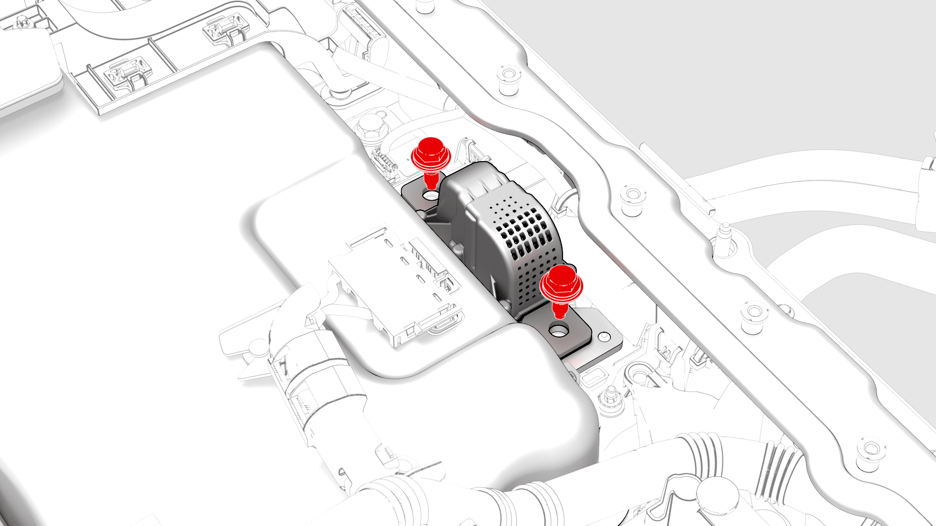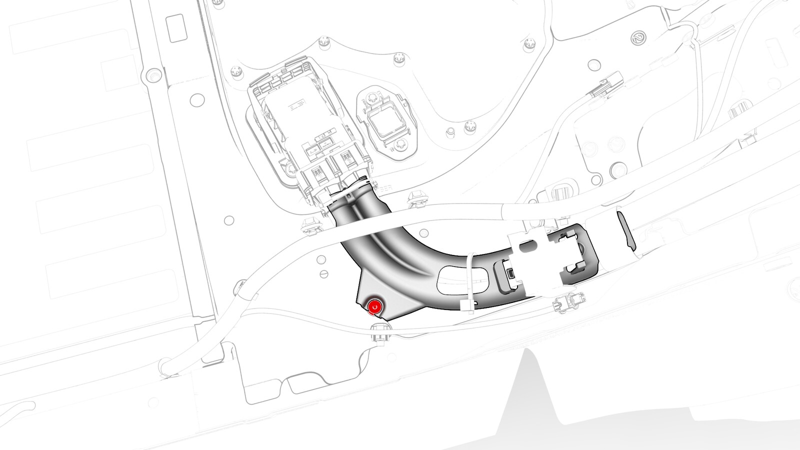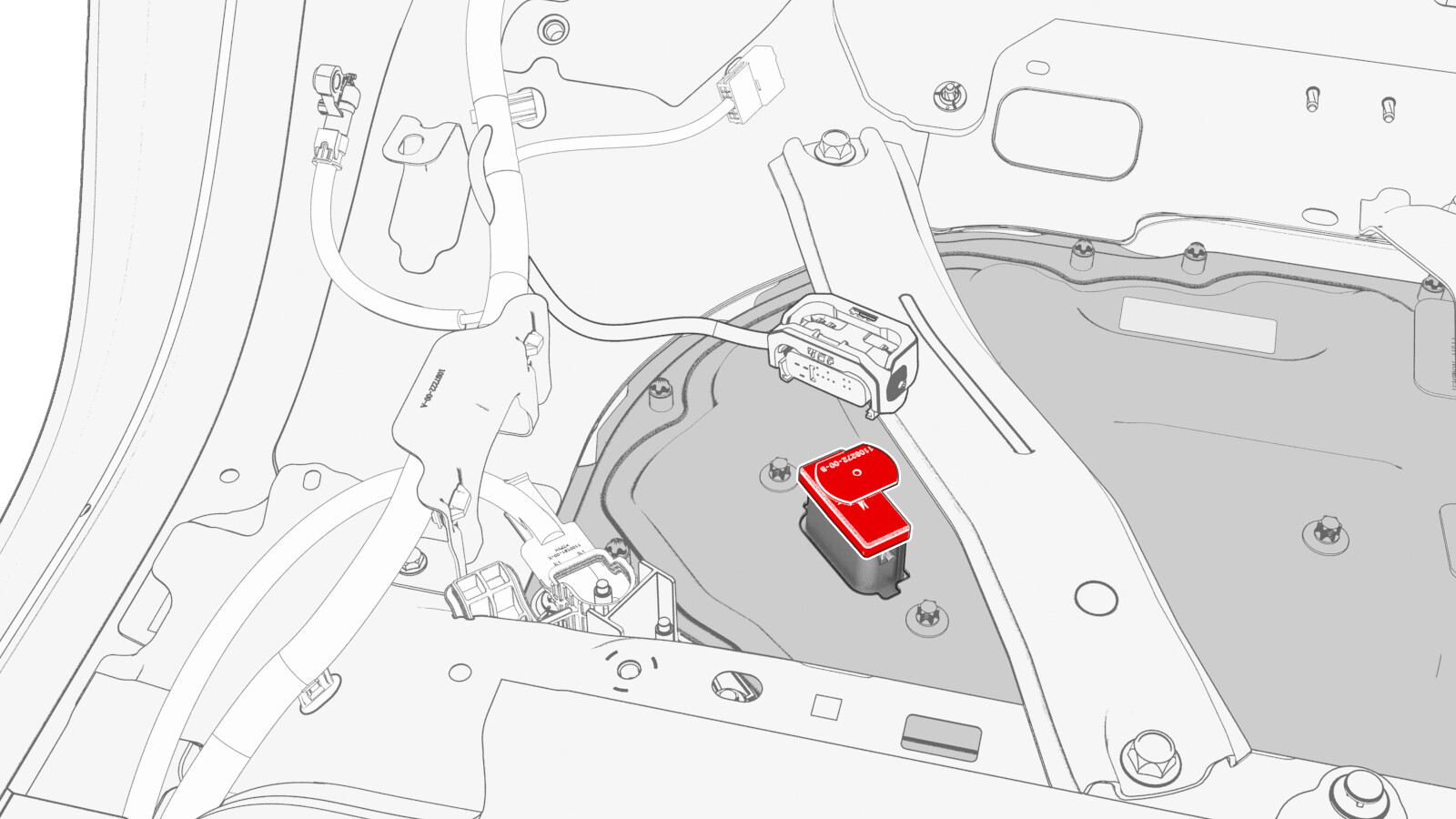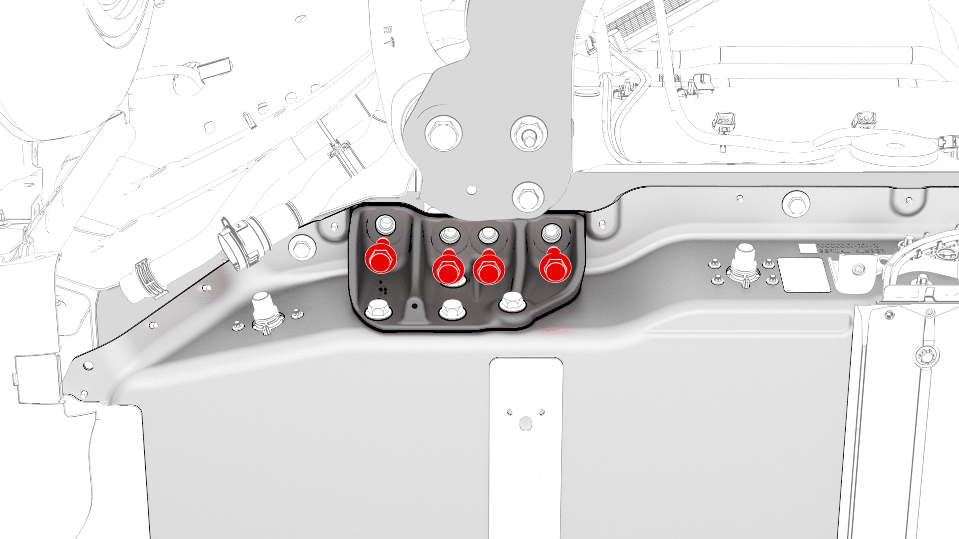 - Lift up the RH side of the rear carpet and insert a hand to feel if the 4th RH HV battery bolt is present. If the bolt is present, then remove the bolt.