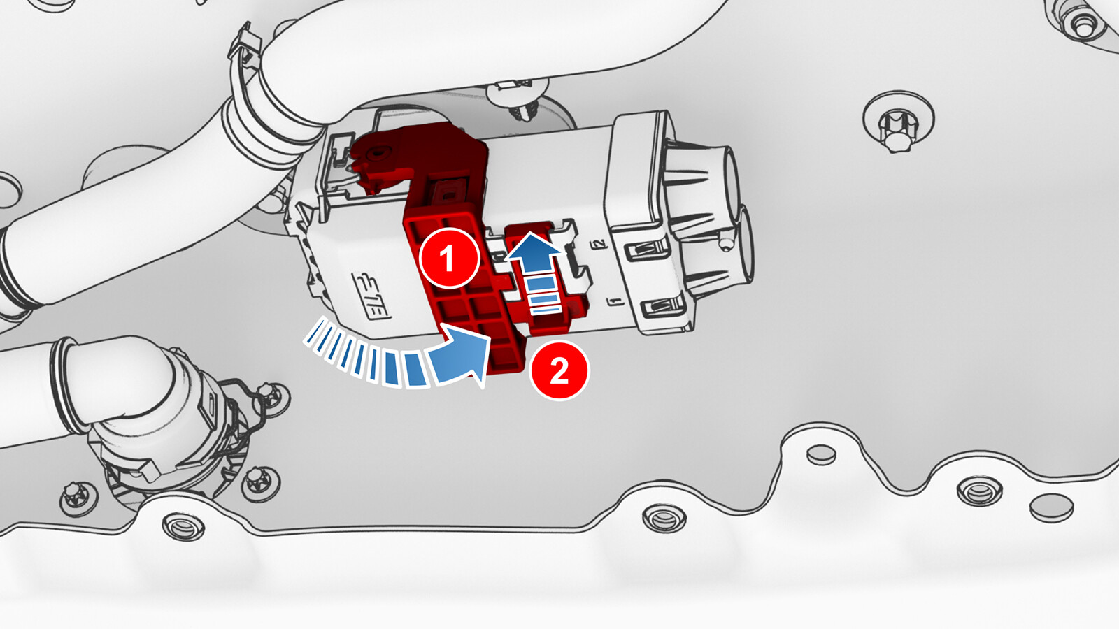 - Fully raise the handle on the 3-phase connector of the charge port to HV battery harness.