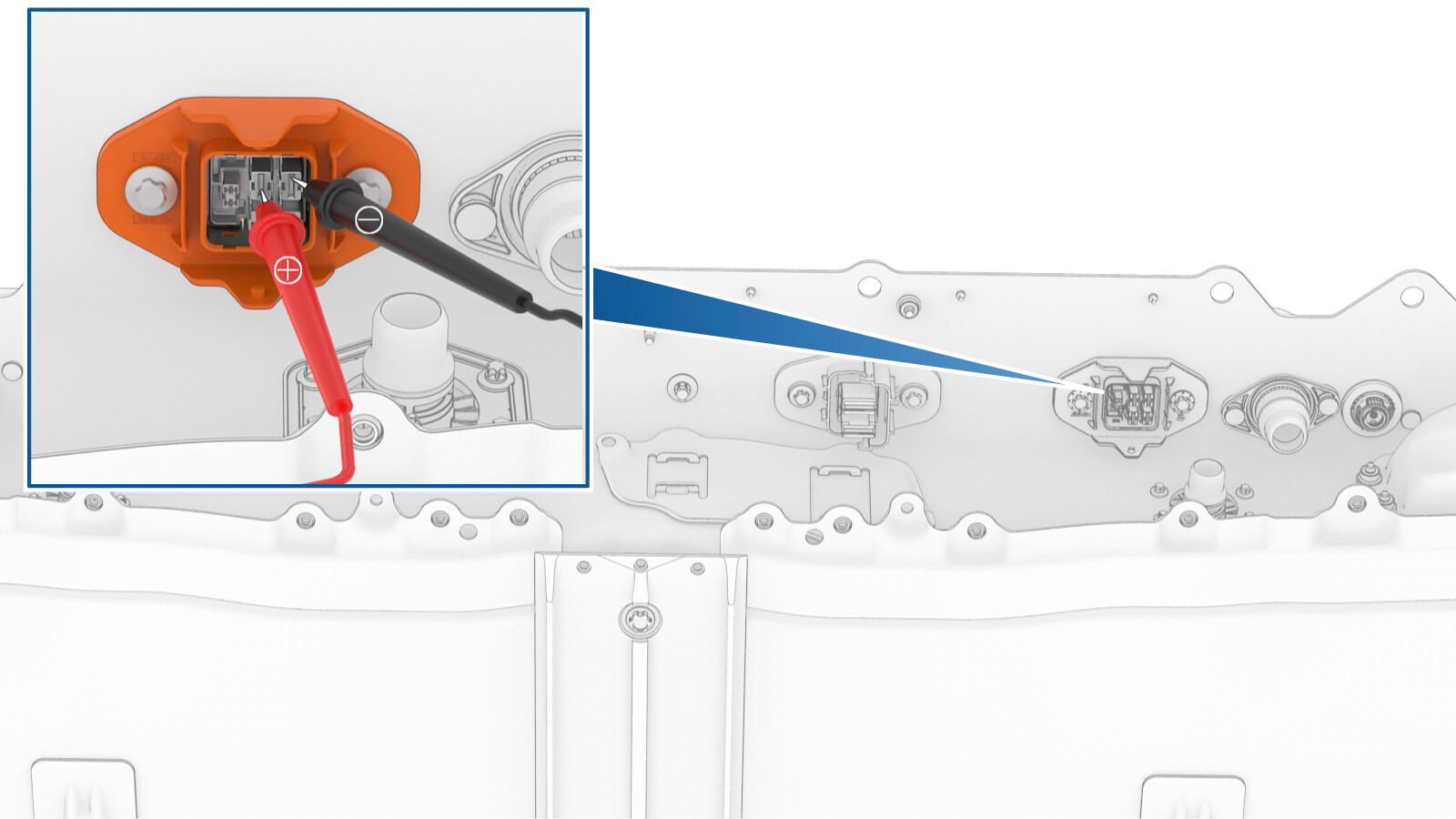 - Repeat step 127 for the other charge port busbar connector lead and DC input HV header bolt head.