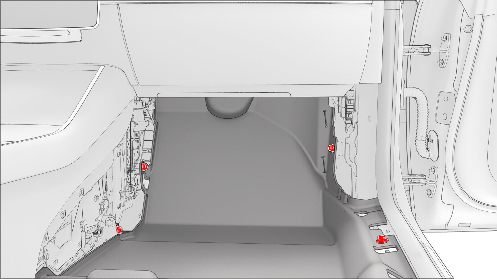- Remove the RH front floor mat.