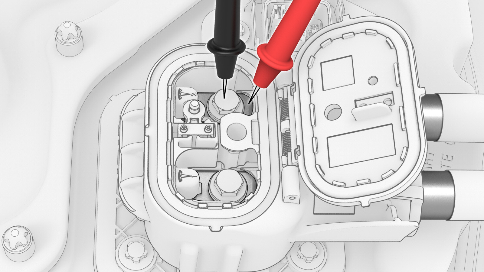 - Use an alcohol wipe to clean the charge port busbar connector lead contact surfaces of residual Penetrox, and allow at least one minute to dry.