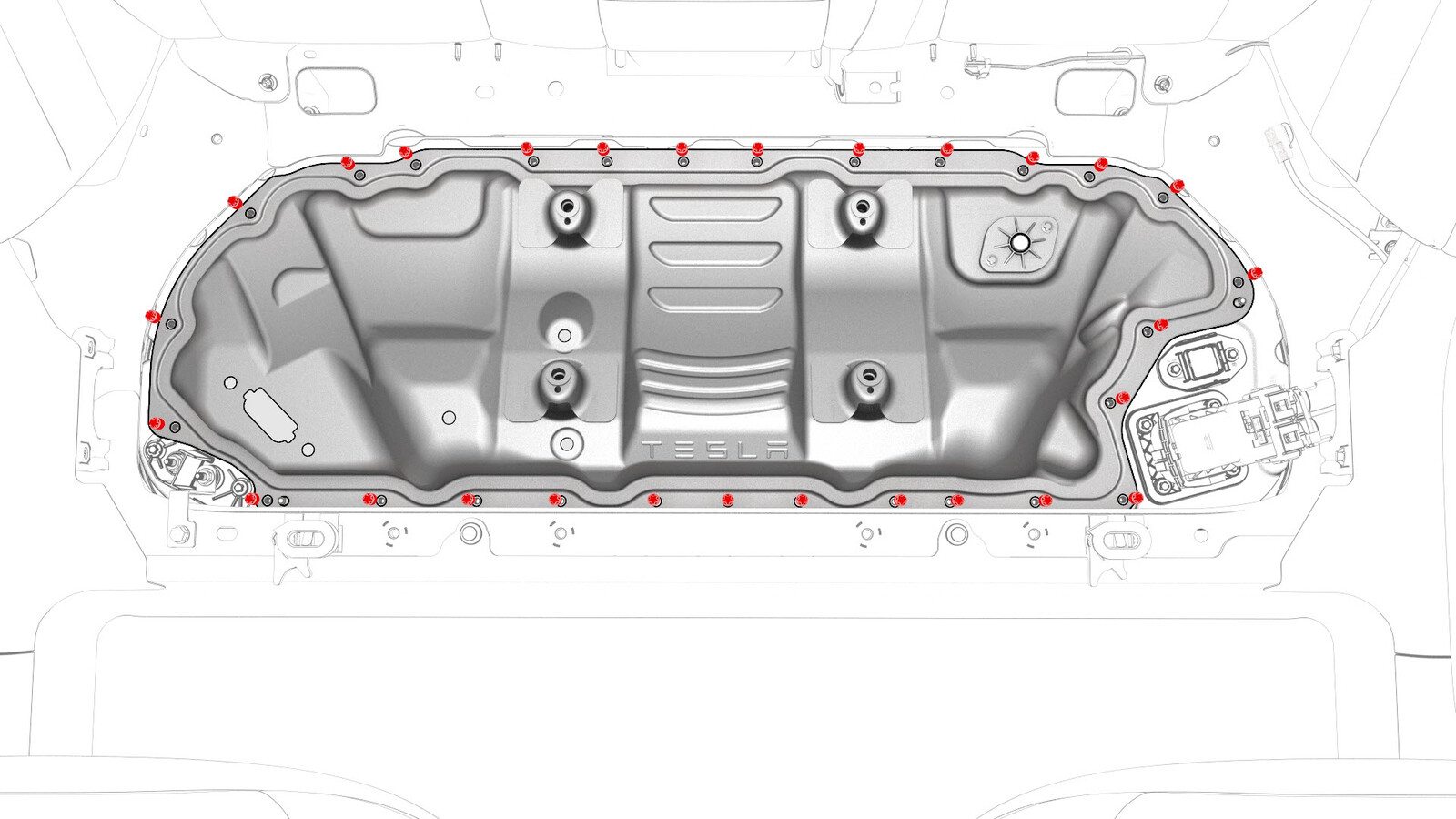 Tighten the RH front inner bolts (x2) that attach the HV battery to the body.