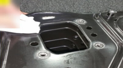 - Use an alcohol wipe to clean the exposed surface of the weld nut bosses, and allow to dry.