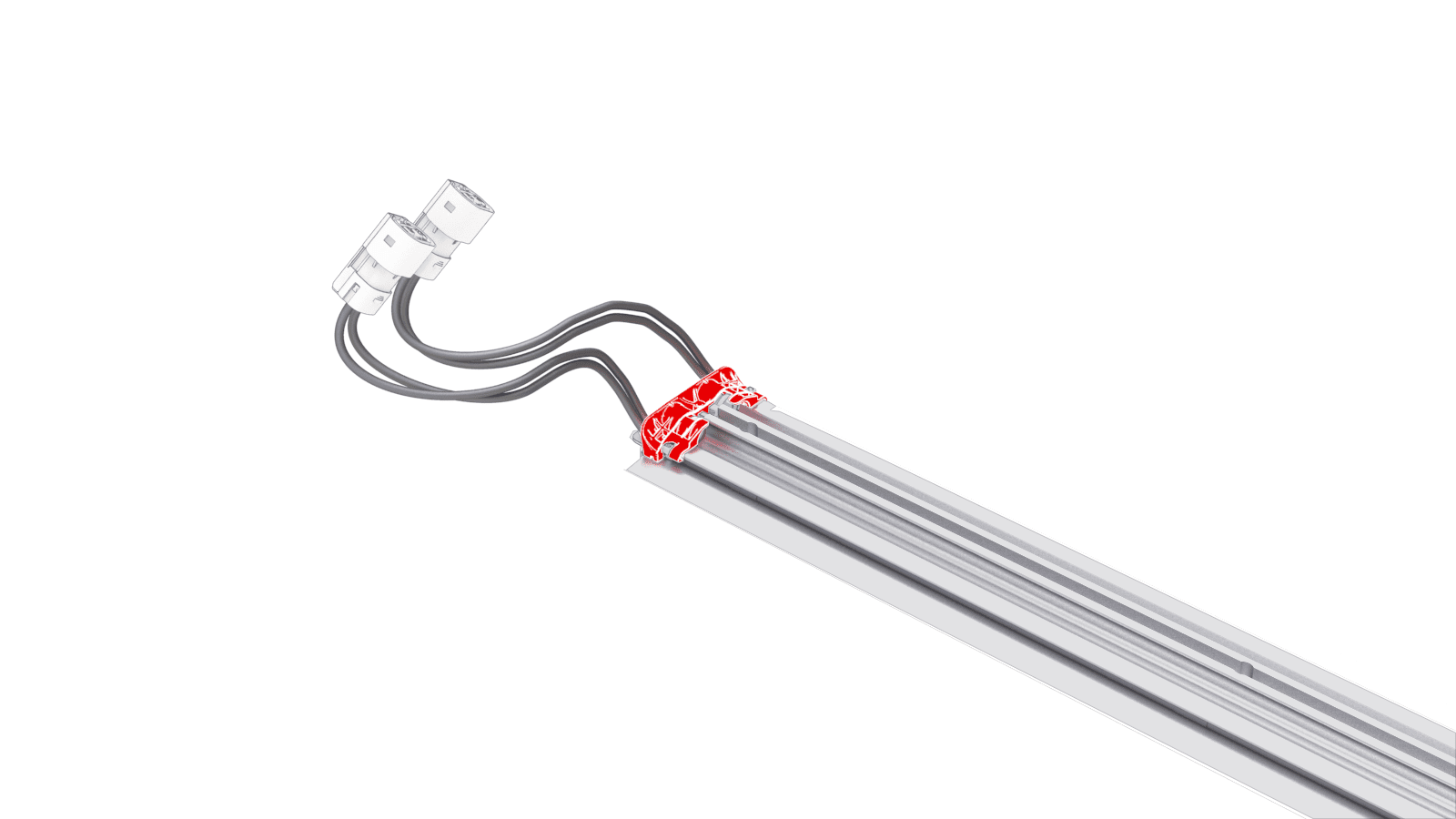 NoteThe end of the harness with 2 connectors goes to the front end of the center rail ski.NoteSome center rail skiis have an arrow stamped into the extrusion to indicate the front end.