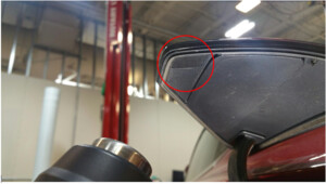 CAUTIONDo not use excessive heat as it will damage the charge port door. Remain three to five inches from contacting the surface.