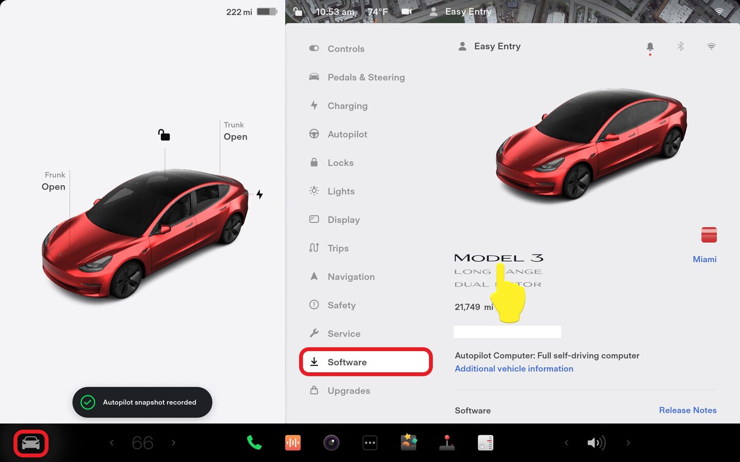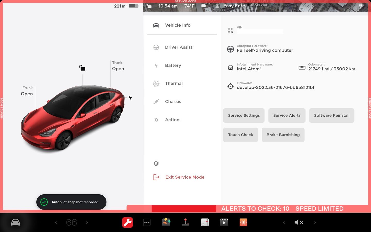 NoteVia UI > Controls > Software, Touch and hold "Model 3" for 4 seconds then release, Use screen keyboard to type "service" into dialog box then select OK
