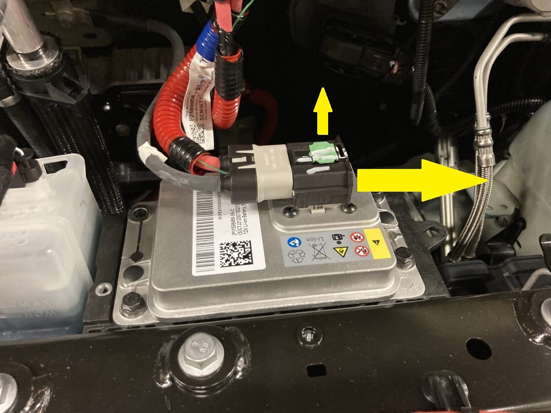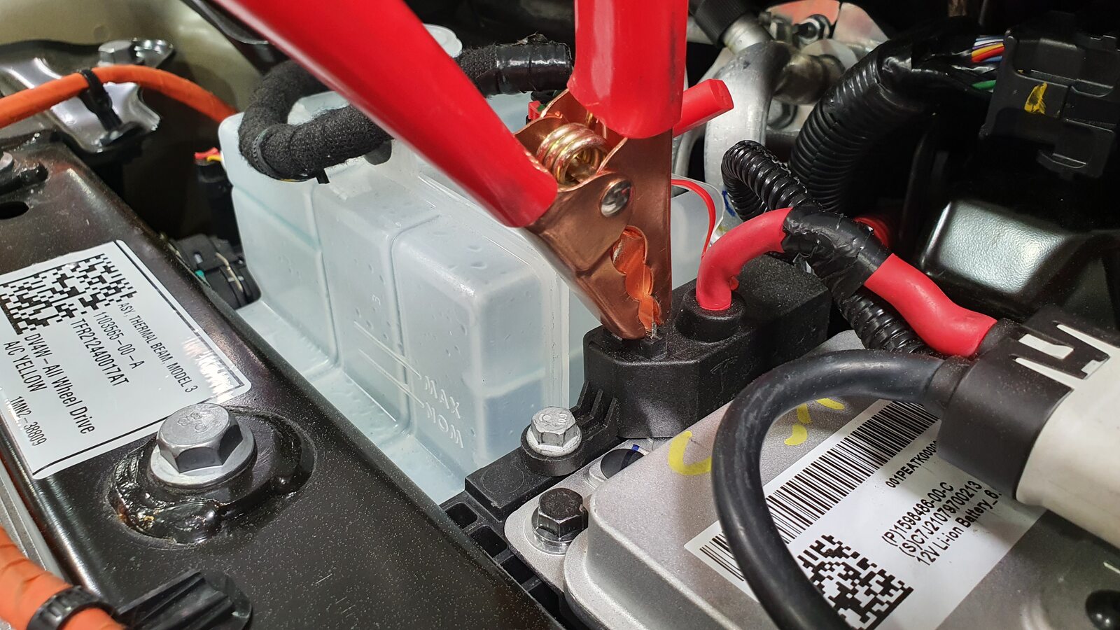 NoteIf the steps above do not succeed in auto-recovering the LV battery, recover the battery using the Tesla Li-Ion battery charger (STILL IN DEVELOPMENT).- Verify that the battery is not discharging at high current and is not self-protecting.