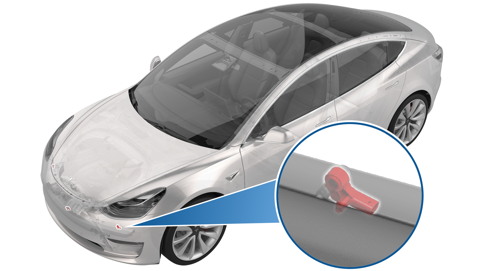 | Bolt that attaches the airbag sensor to the front end carrier |