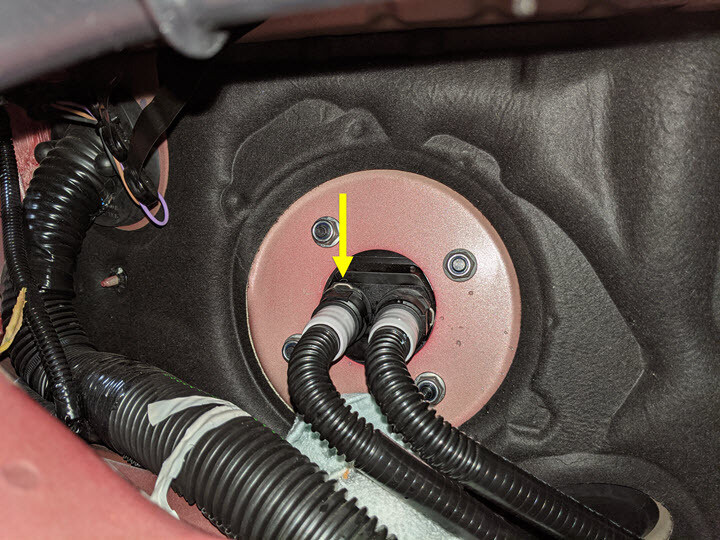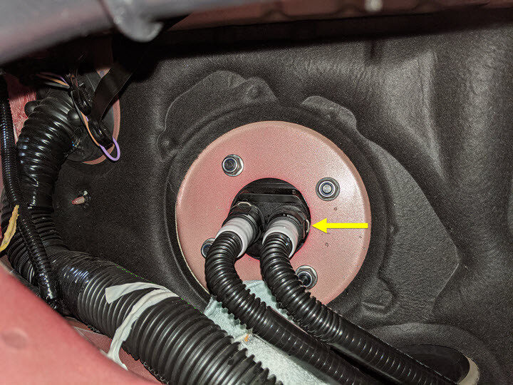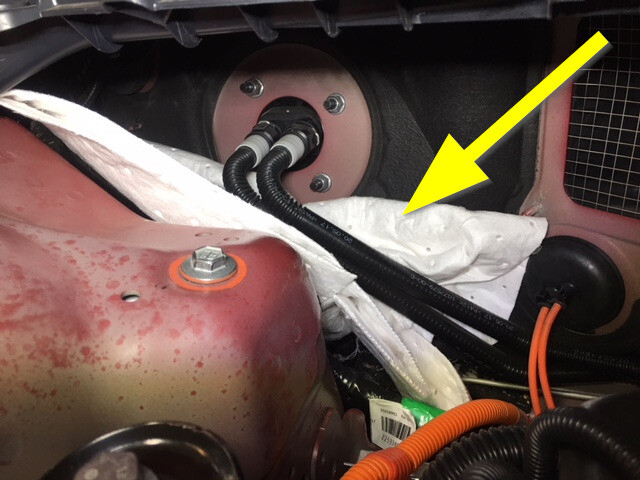- Remove absorbent material from below car computer coolant hose connection points