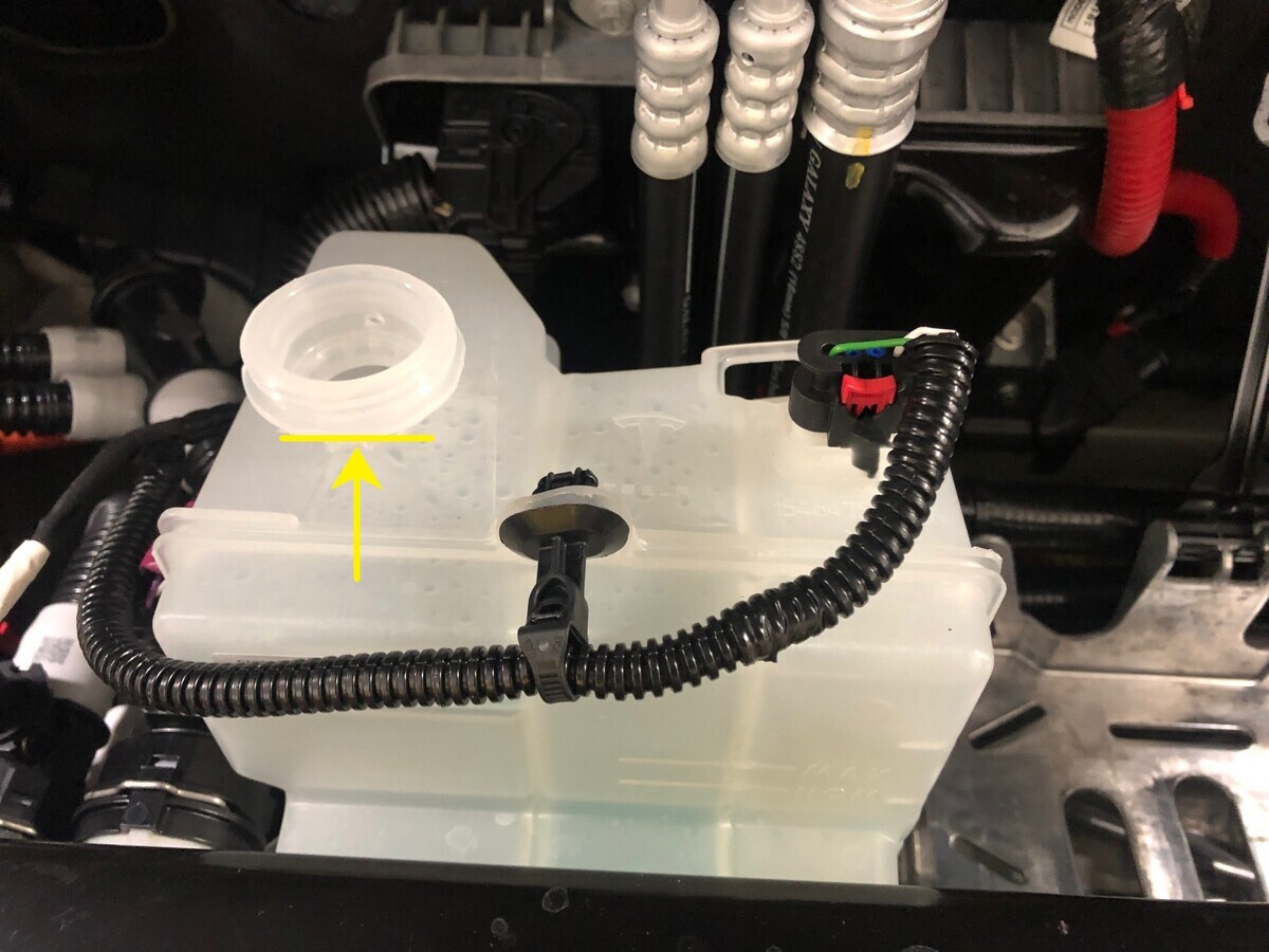 - Fill coolant bottle to base of neck as indicated
