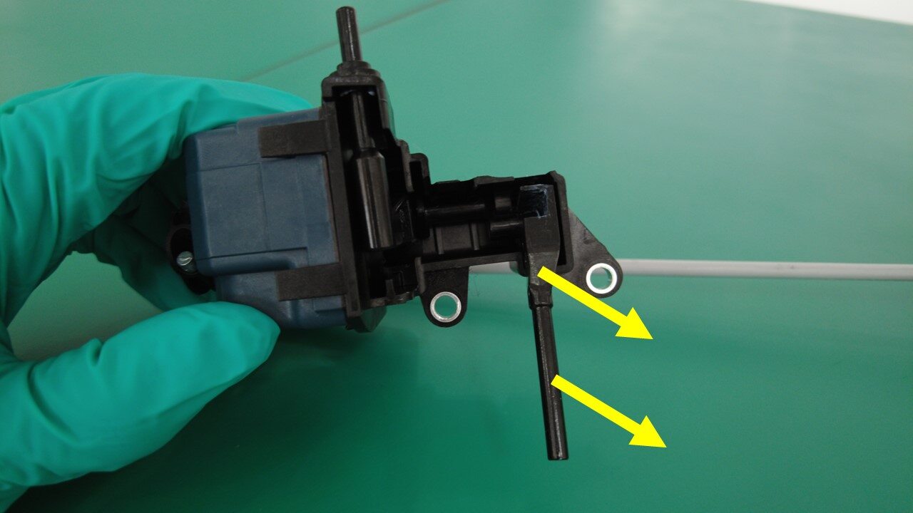 - Rotate to install the AC latch stick to the actuator.