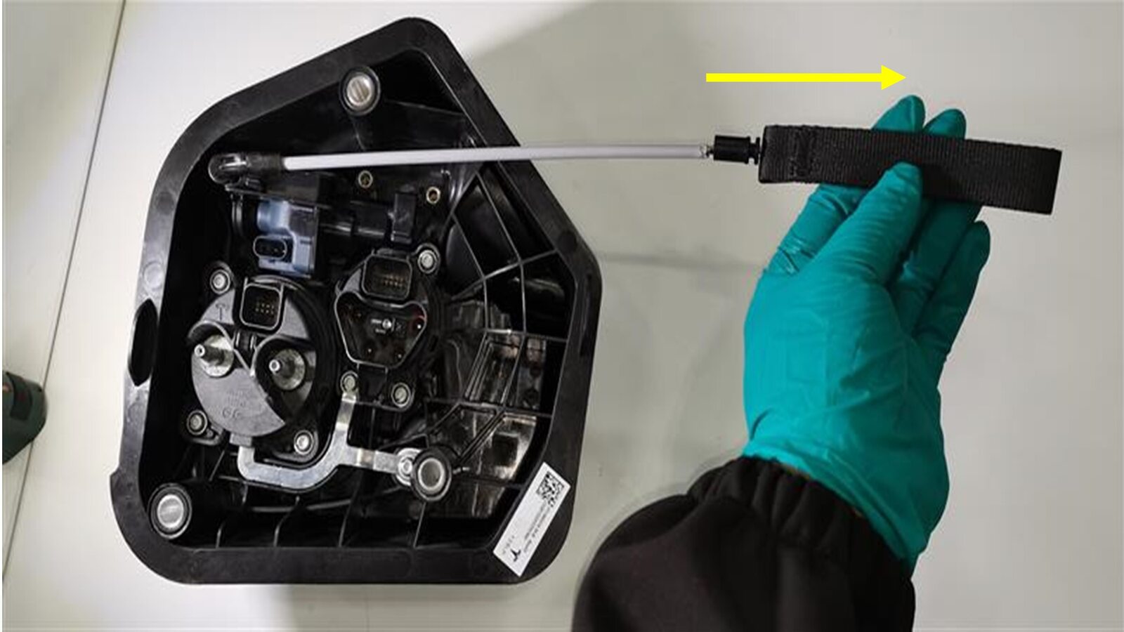 - Rotate to remove the AC charge port latch stick from the actuator.