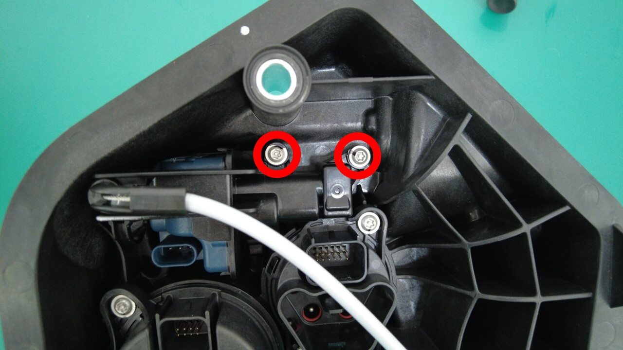 | Screws (x2) that attach the actuator to the charge port assembly |