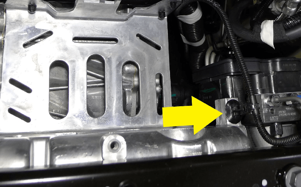 - Remove the screws at the rear and front of the coolant reservoir that secure the coolant reservoir to the supermanifold.