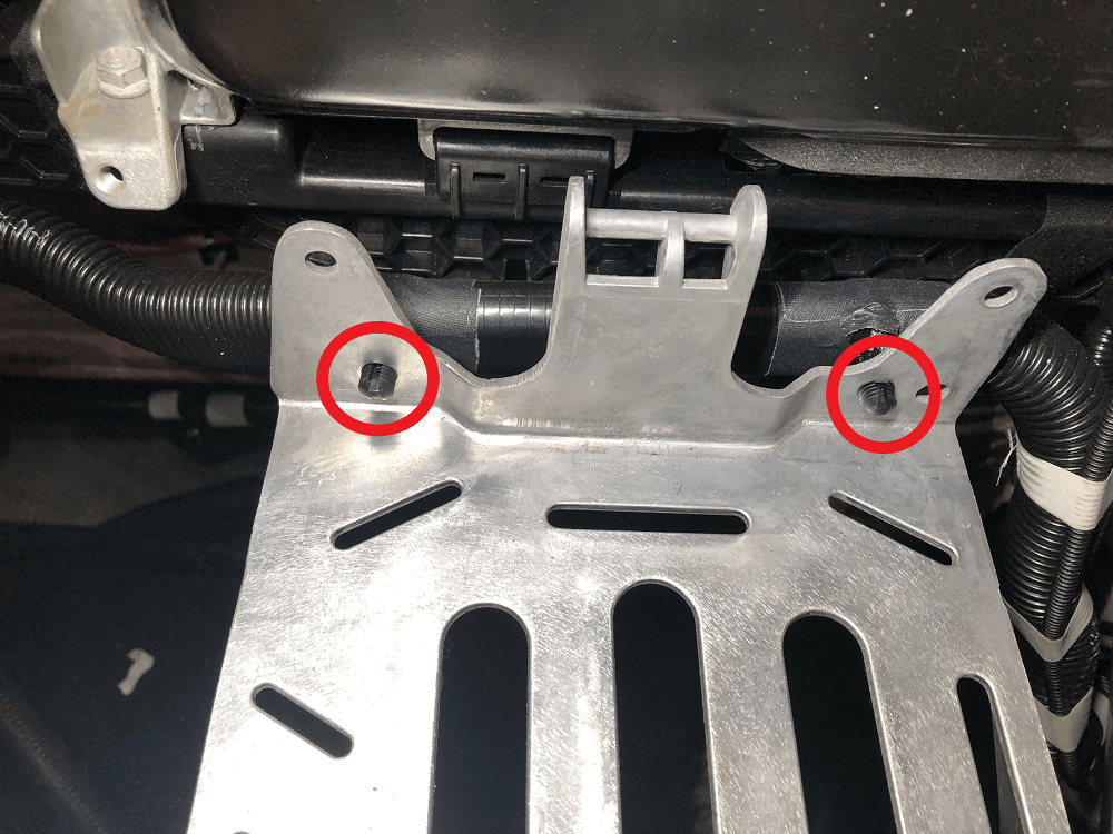 - Install the bolts (x2) (torque 9Nm) that attach the 12V battery bracket beam to the body.