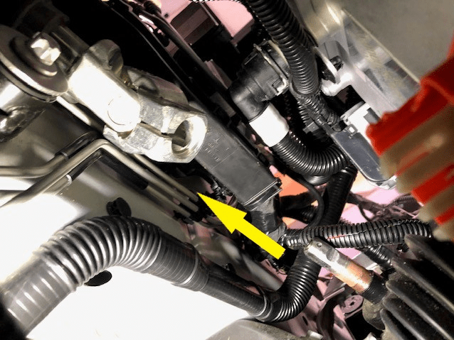 - Remove the HV battery return hose from the vehicle.