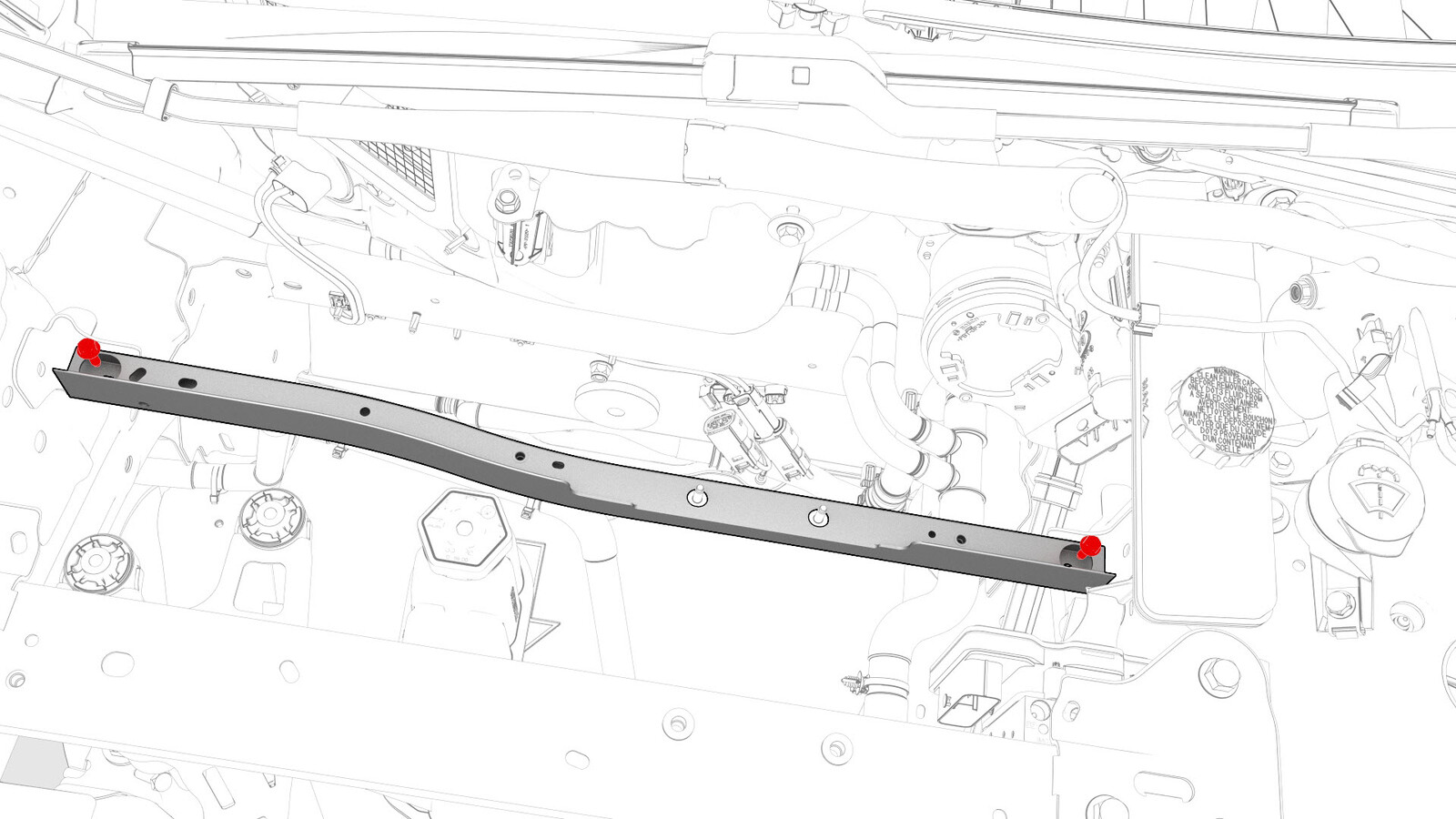 - Remove the bolts (x2) (torque 9Nm) that attach the 12V battery bracket beam to the body.