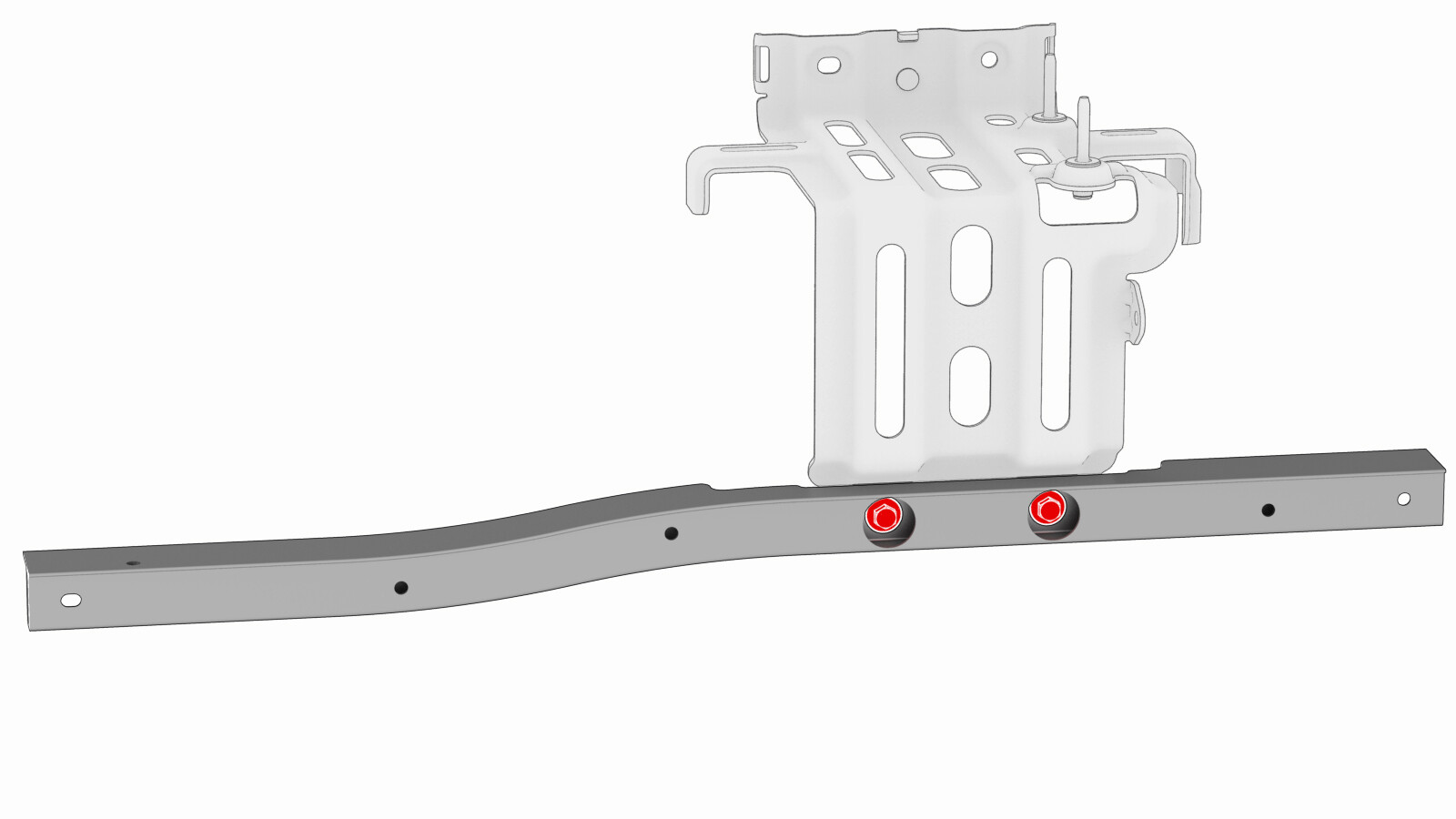 Remove the bolts that attach the 12V battery beam to the vehicle.