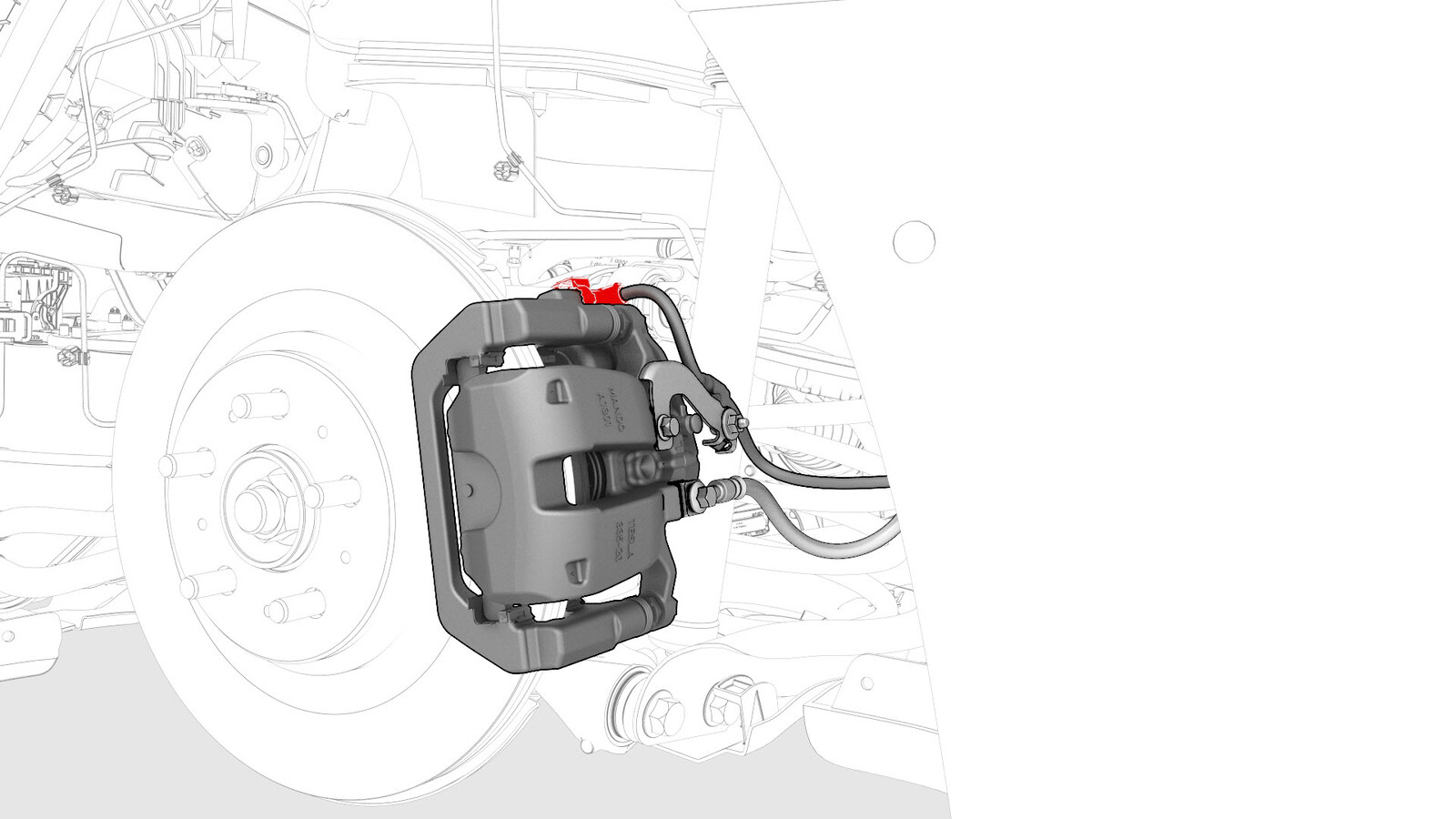 - Remove the bolt that attach the electrical harness bracket to the LH rear brake caliper.