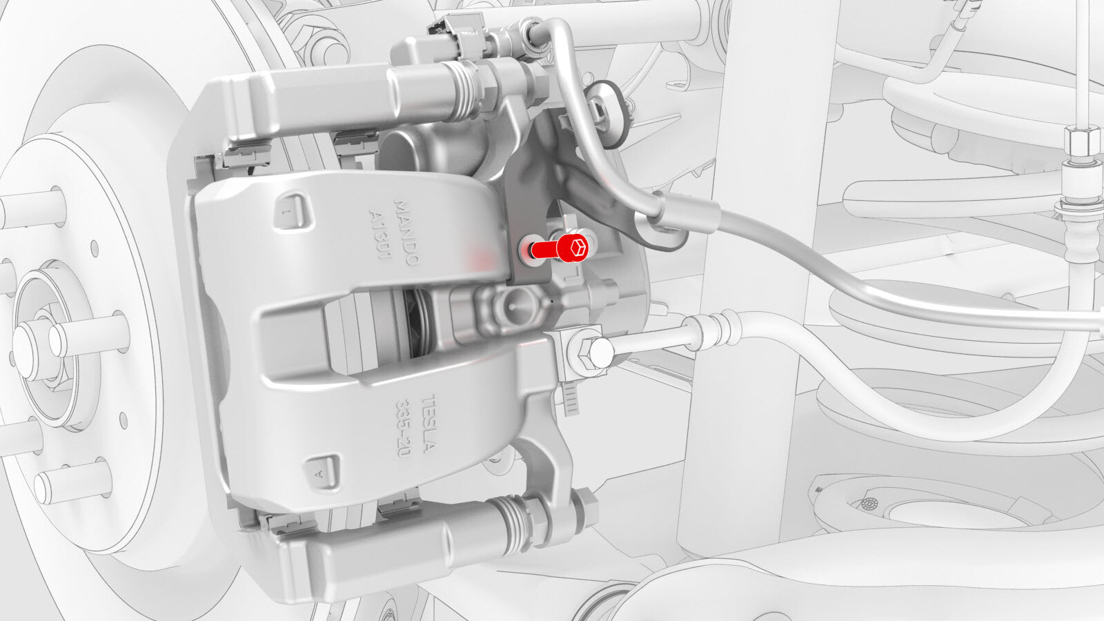 attaches the electrical harness bracket to the LH rear brake caliper.