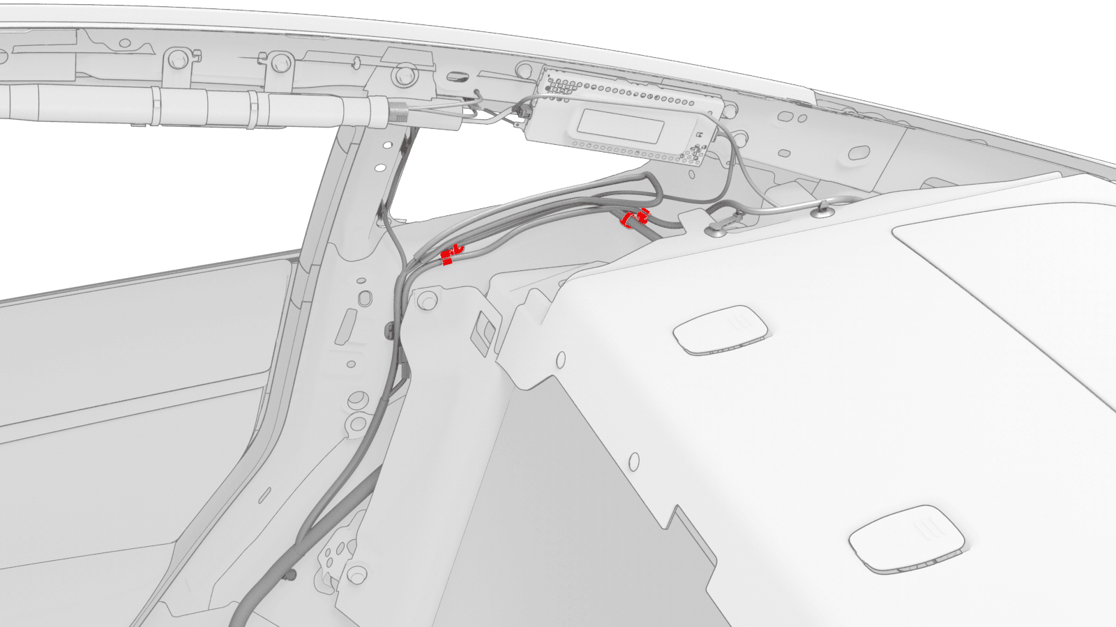 - Release the clips that attach the package tray wiring harness to the C-pillar.