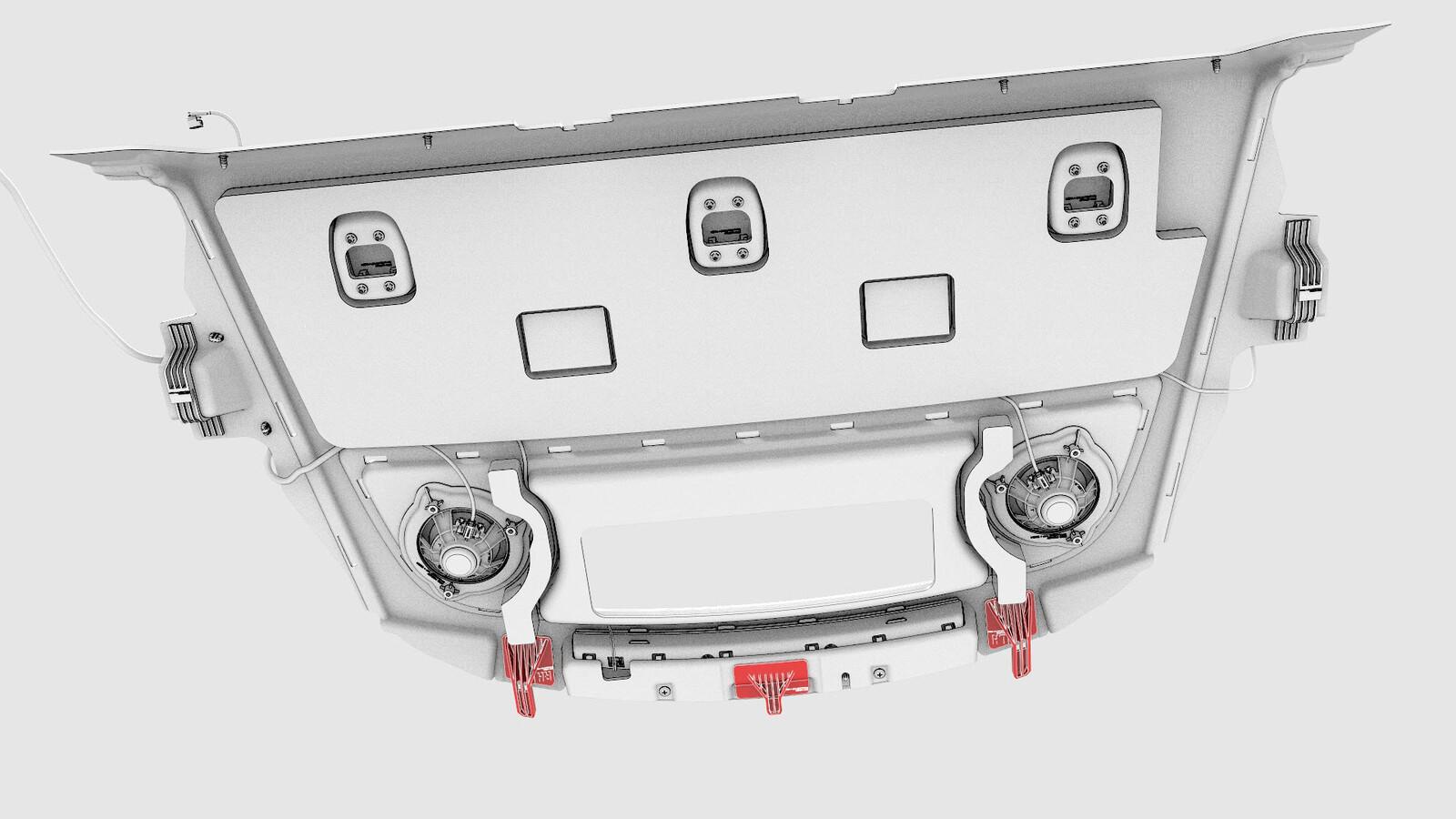 - Install the clips that attach the package tray wiring harness to the C-pillar.