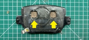 1. Clean the back side of the inner rear brake pads (x2) and the surfaces of the brake caliper pistons (x2) using brake cleaner.