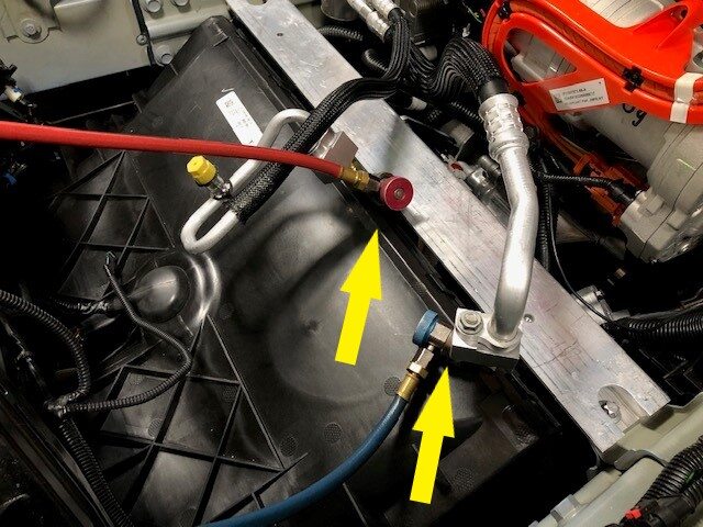- Reconnect AC hoses to vehicle