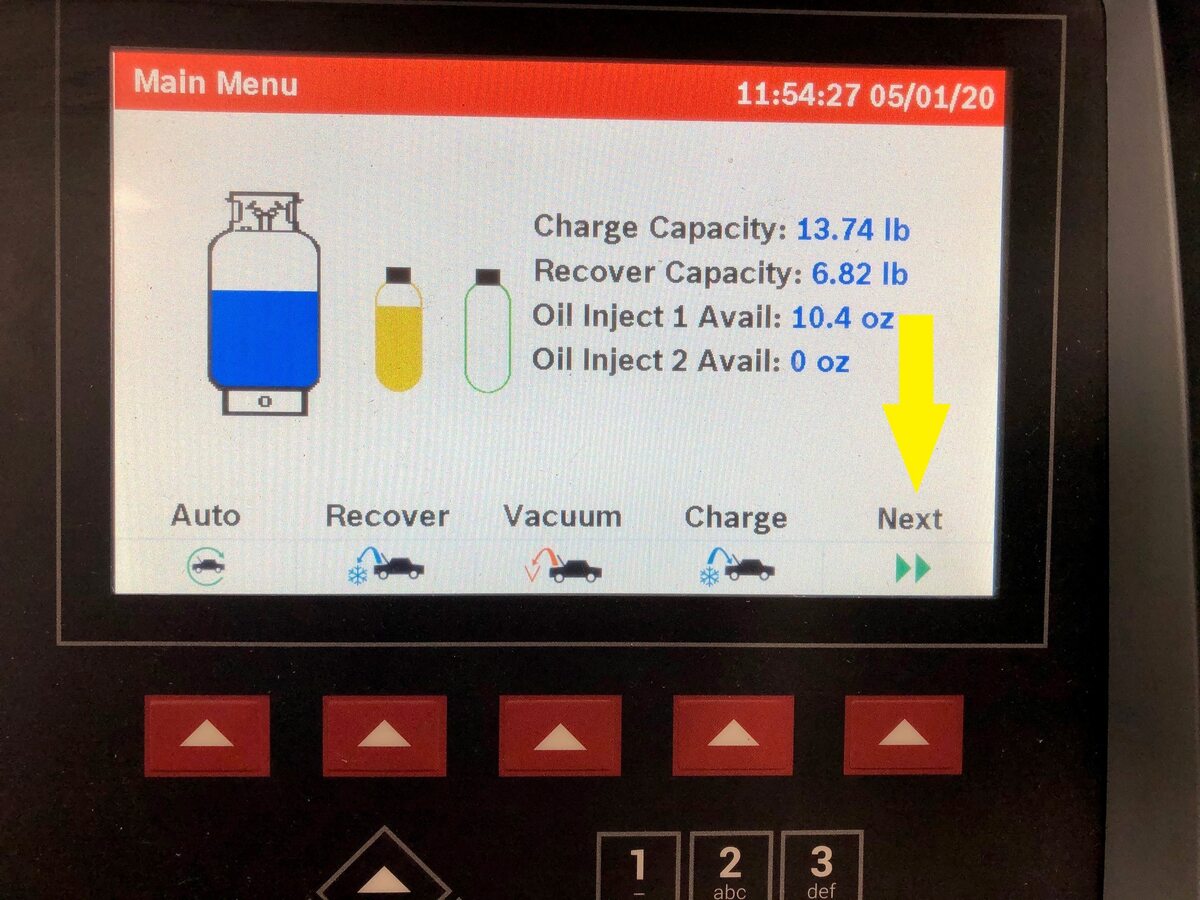 NoteSelect 20 mins of Vacuum, Recharge refrigerant to car's specs, add oil quantity as needed, select both HP and LP for charging