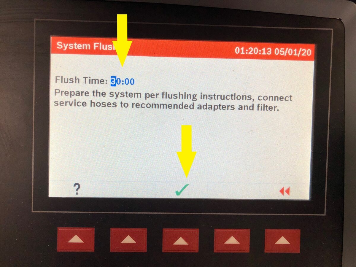 - On the touchscreen, tap the Service Mode "wrench" (at the bottom of the touchscreen UI), and then tap , and allow the routine to complete.