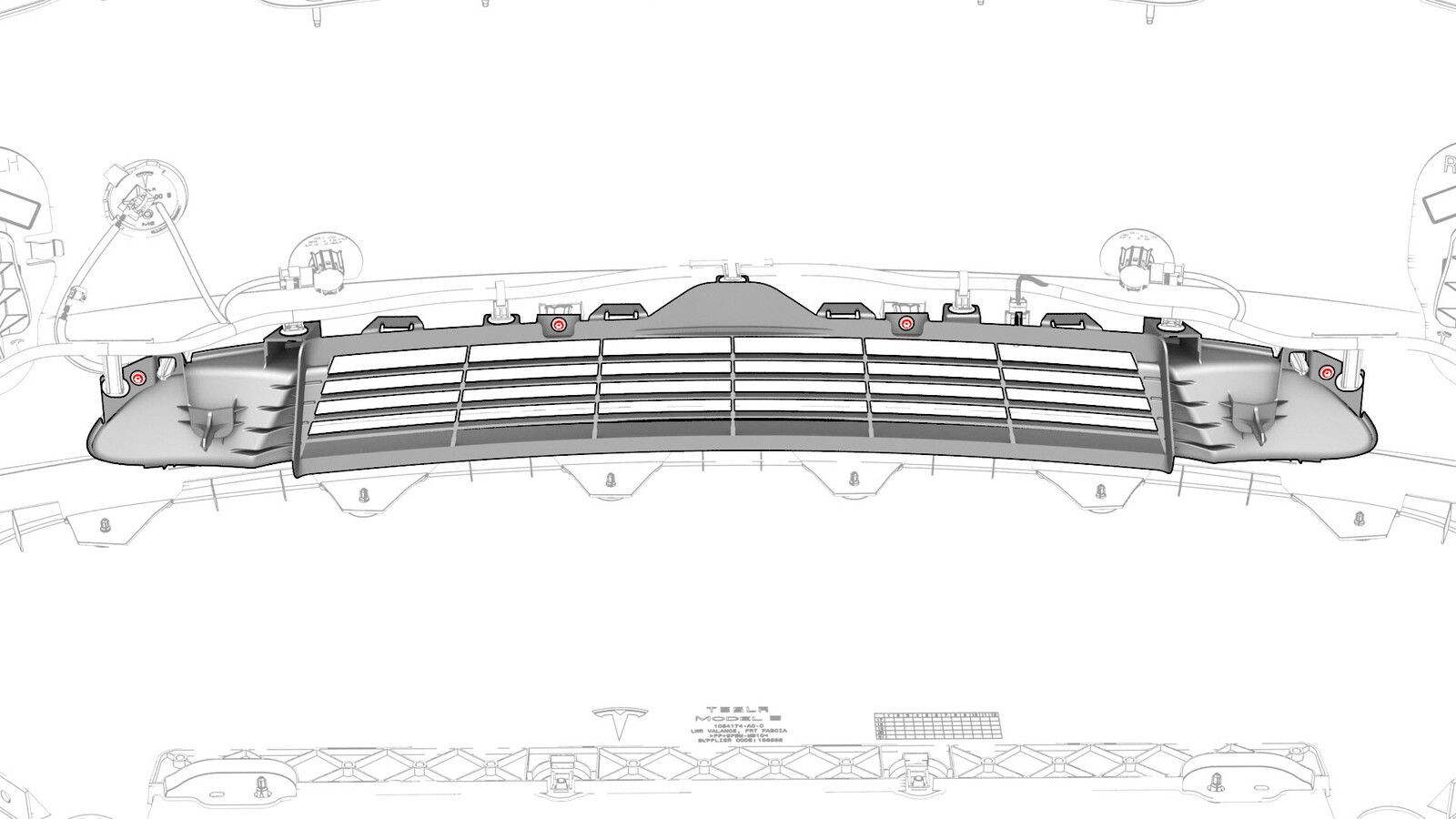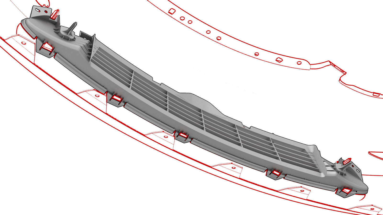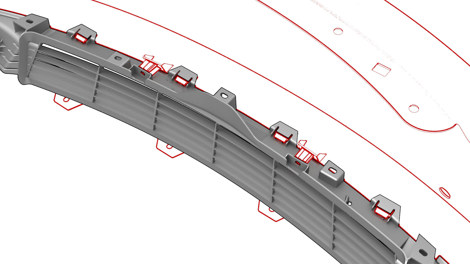 - Install the front fascia grille onto the front fascia, and then fasten the clips (x9) that attach the grille to the fascia.