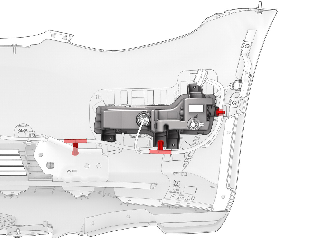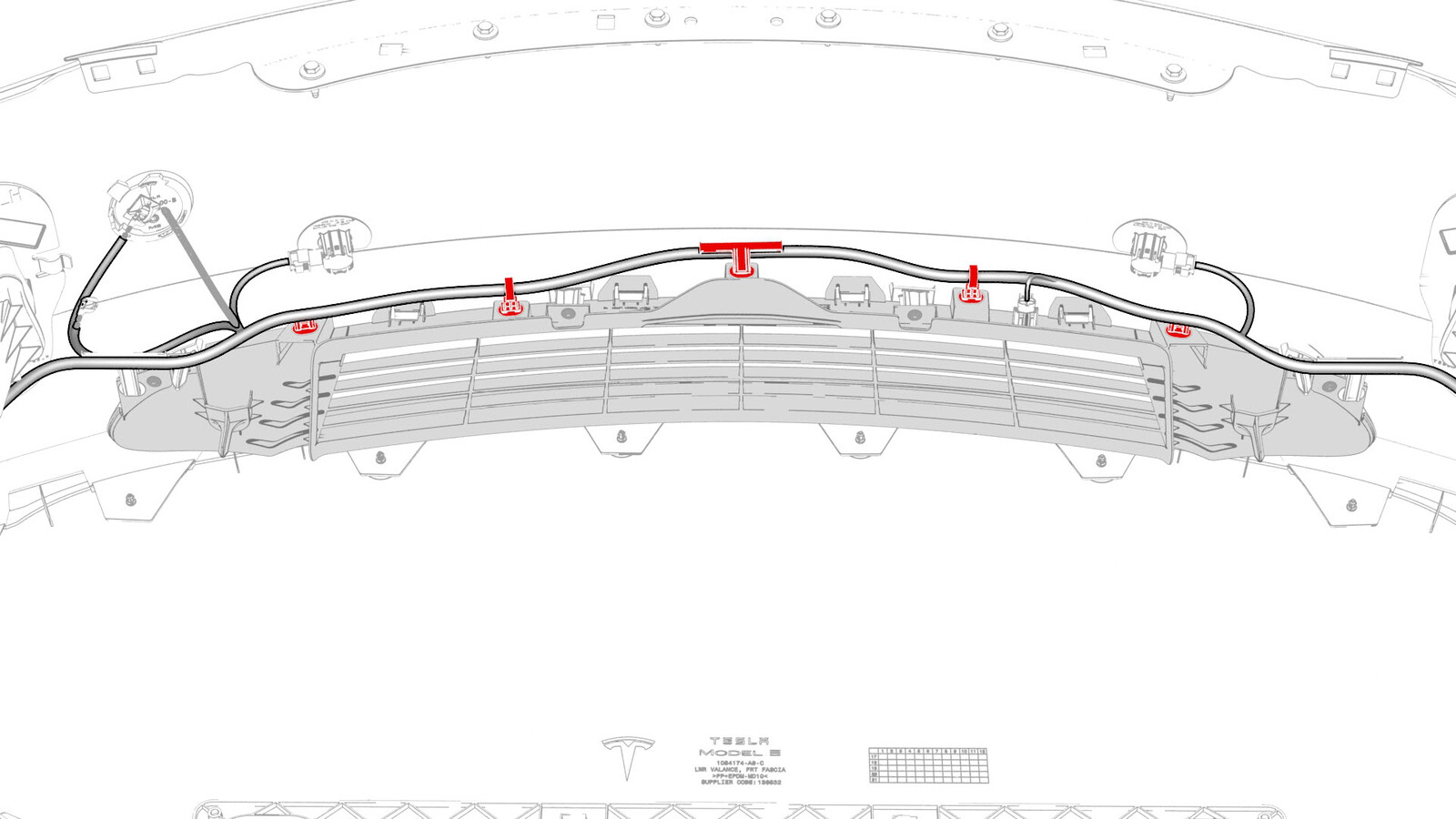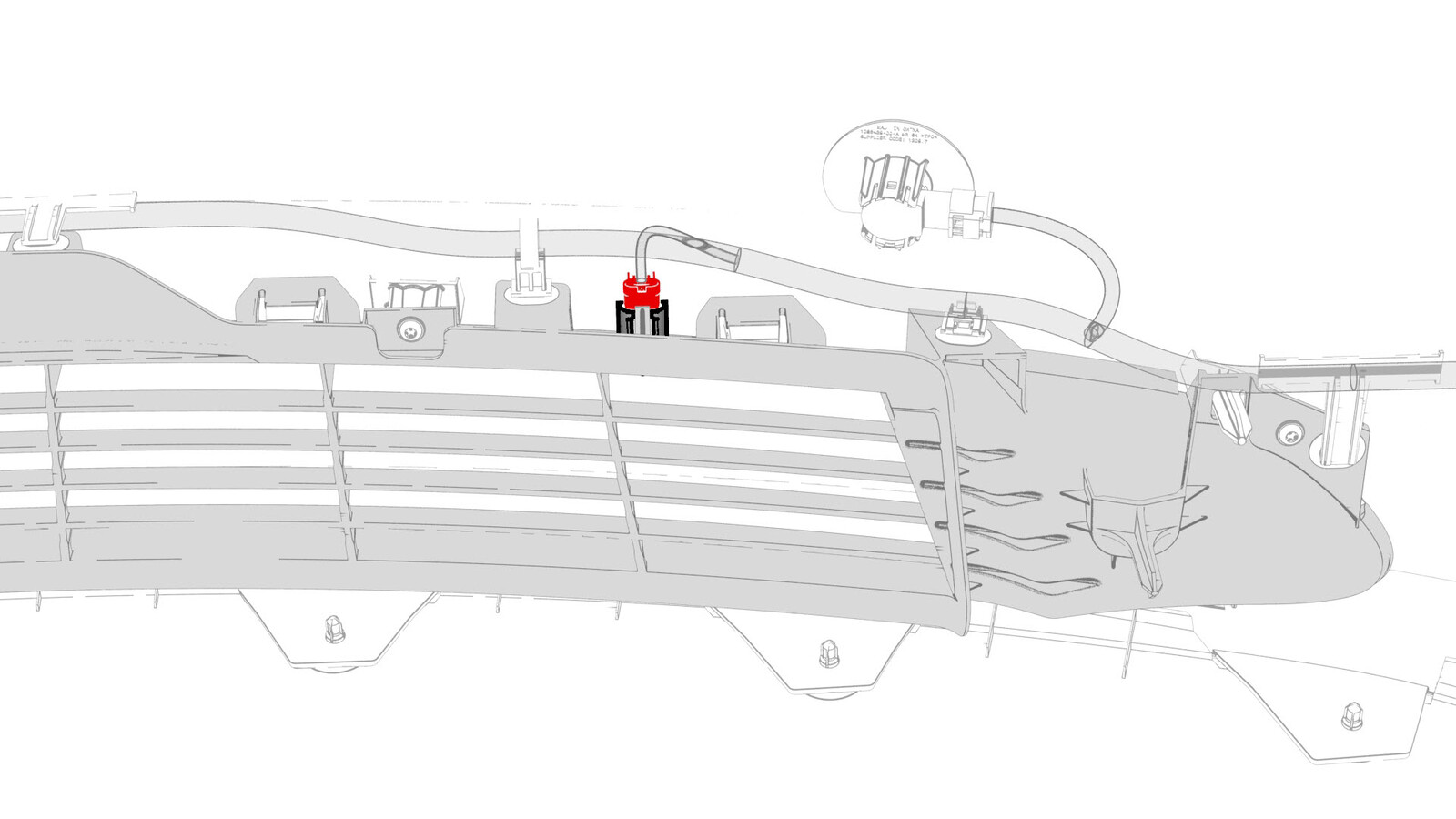- Install the electrical harness to the front fascia, and then fasten the clips that attach the electrical harness to the fascia.