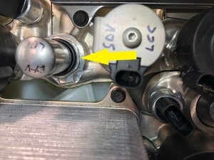 - Release the locking tab at the bottom of the desired EXV coil, and then remove the coil from the expansion valve.