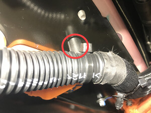 - Release the clips (x2) that attach the coolant hoses to RH shear plate.