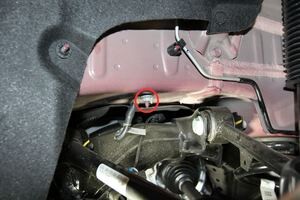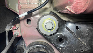 - Use a paint pen to trace around the LH and RH rear subframe mounting bolts, so that the bolts can be realigned later during the subframe installation.