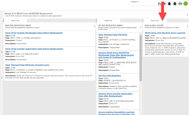 - From the RESOLVER LEARN Action List, click Rear Drive Unit Resolver Error Learning, click Run, and follow the displayed instructions.