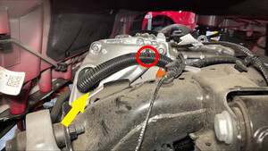 - Fasten the clip that attaches the rear subframe harness to the body on the RH side.