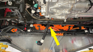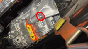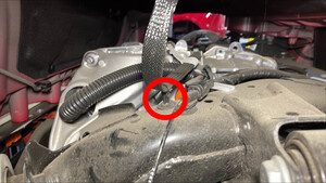 - Release the clip that attaches the rear subframe electrical harness to the rear drive unit inverter.