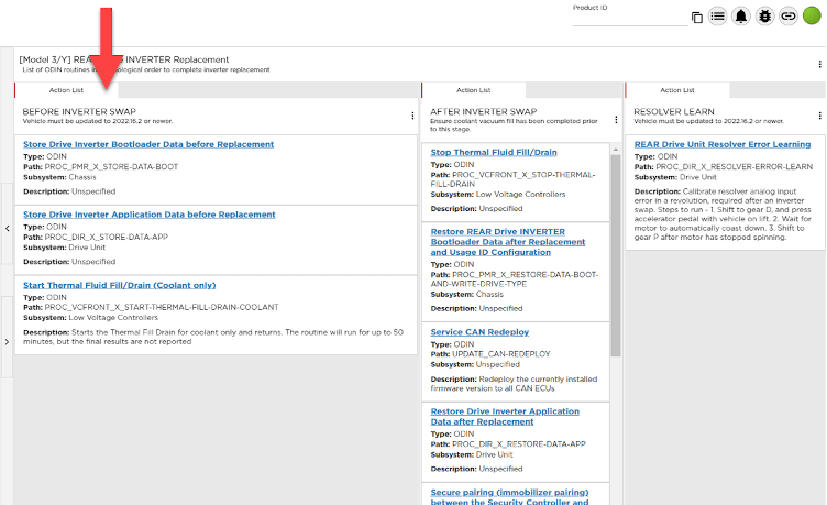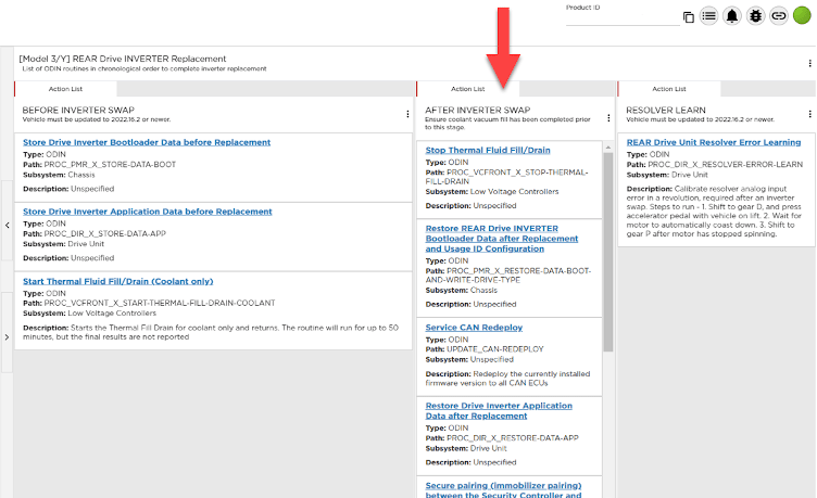 - From the AFTER INVERTER SWAP Action List, click Restore REAR Drive INVERTER Bootloader Data after Replacement and Usage ID Configuration, click Run, and allow the routine to complete.