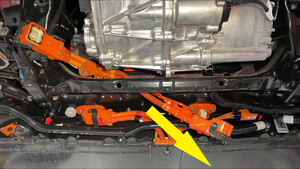 - Remove the large bolt that attaches the RH shear plate and rear subframe to the body, and then remove shear plate.