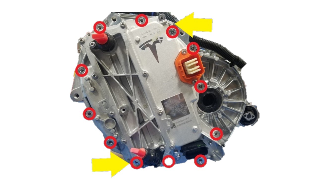 - Remove the small bolts (x2) that attach the RH shear plate to the HV battery.