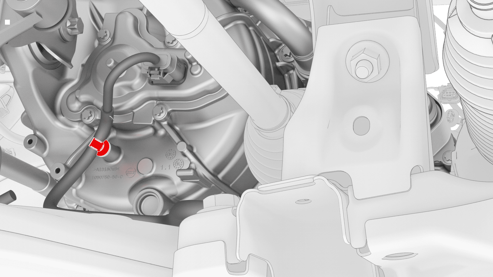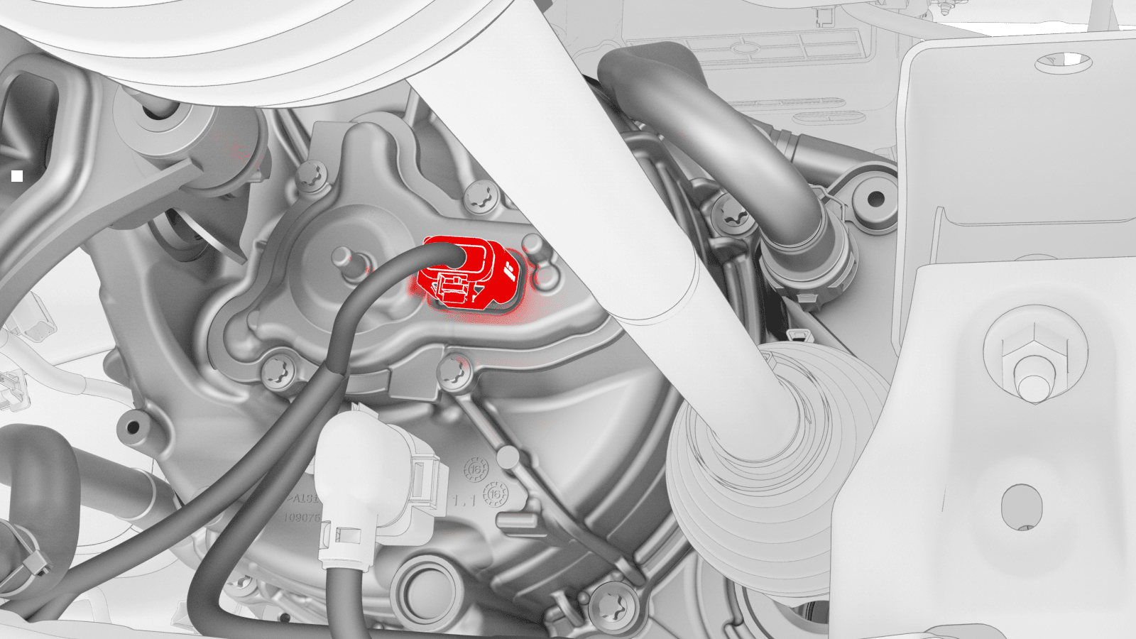 - Release the grey locking tab, and then press down on the tab to disconnect the oil pump connector.