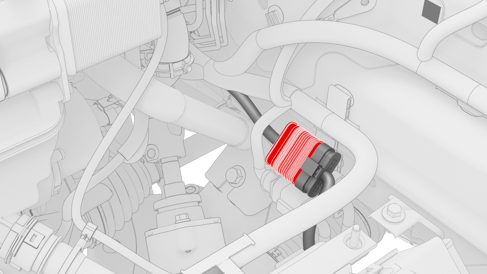 - Release the clips that attach the front drive unit harness to the front subframe.