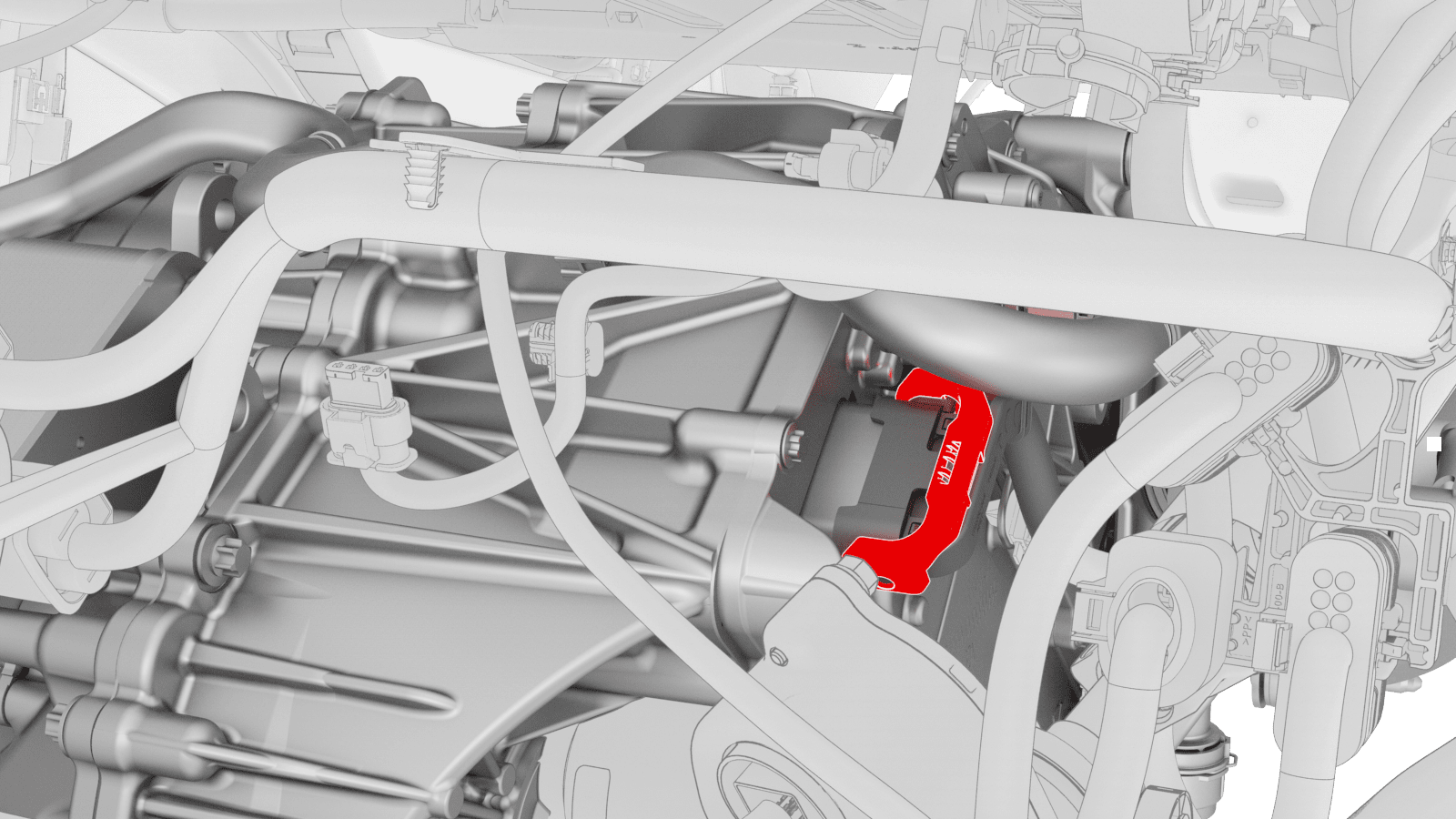 - Release the grey locking tab, and then press on the tab to disconnect the front drive unit logic connector near the LH side of the front subframe.