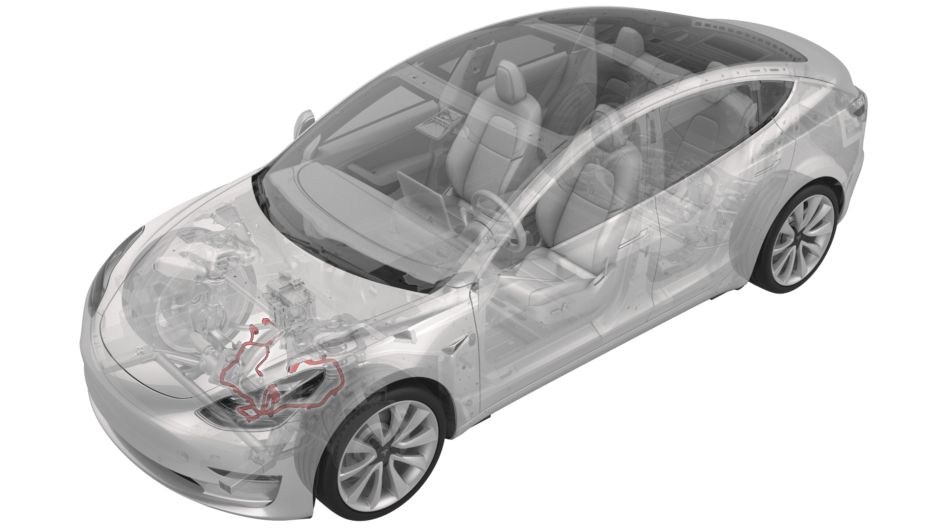 - Remove the front drive unit harness from the front subframe.