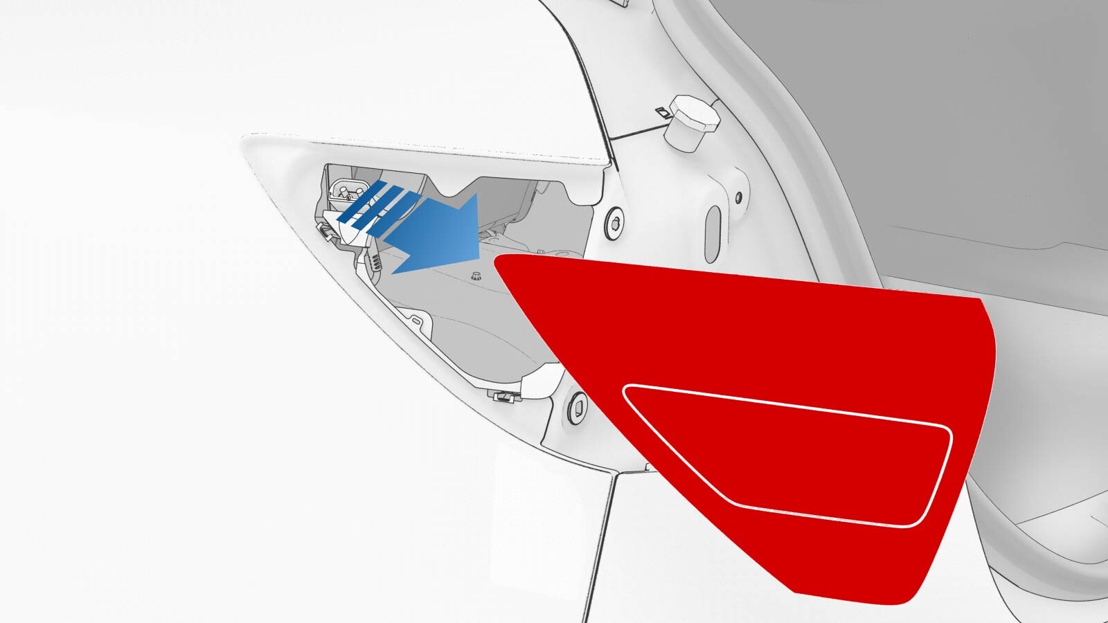 - Release the edge of the trunk carpet, and then move the LH trunk side trim aside.