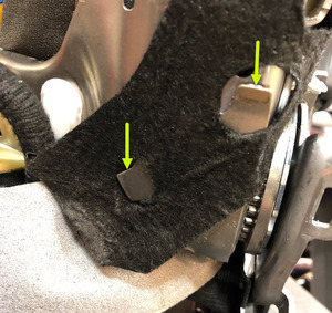 - Pull the flaps straight up off of the retaining tabs to release the flaps that cover the outboard corner of the front passenger seat back frame.